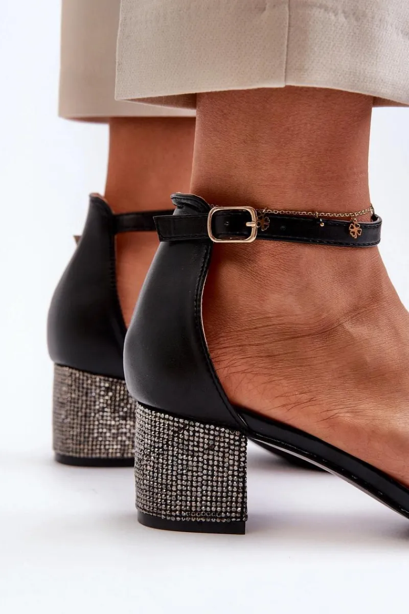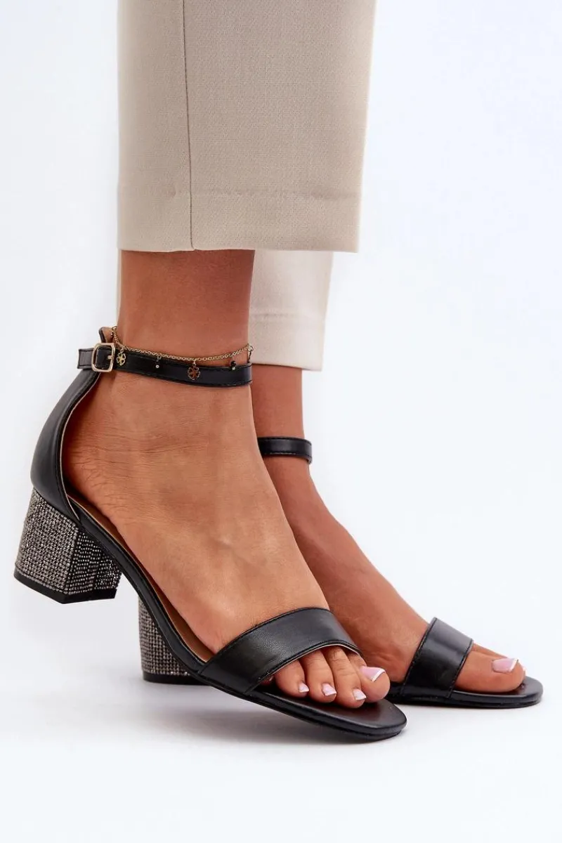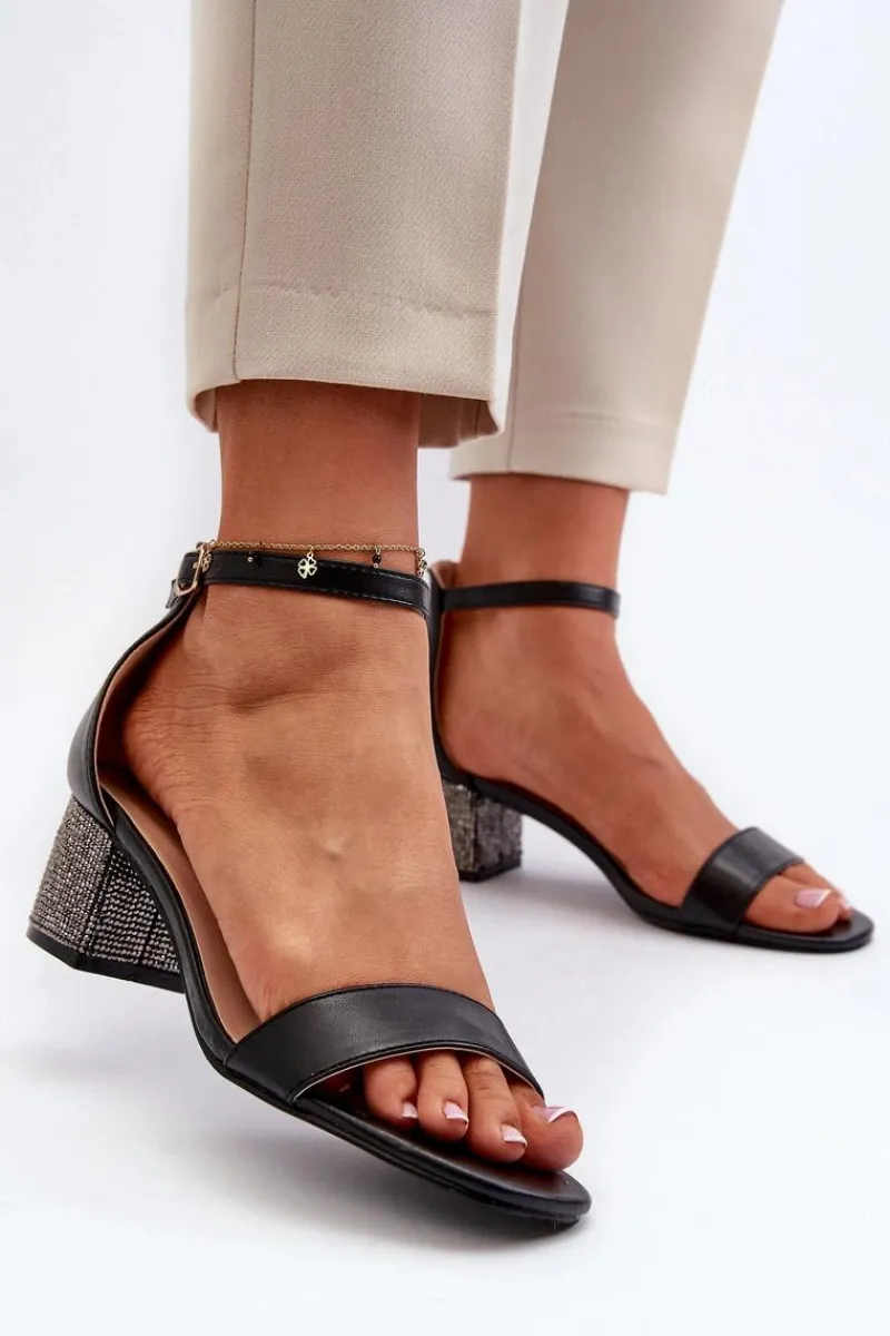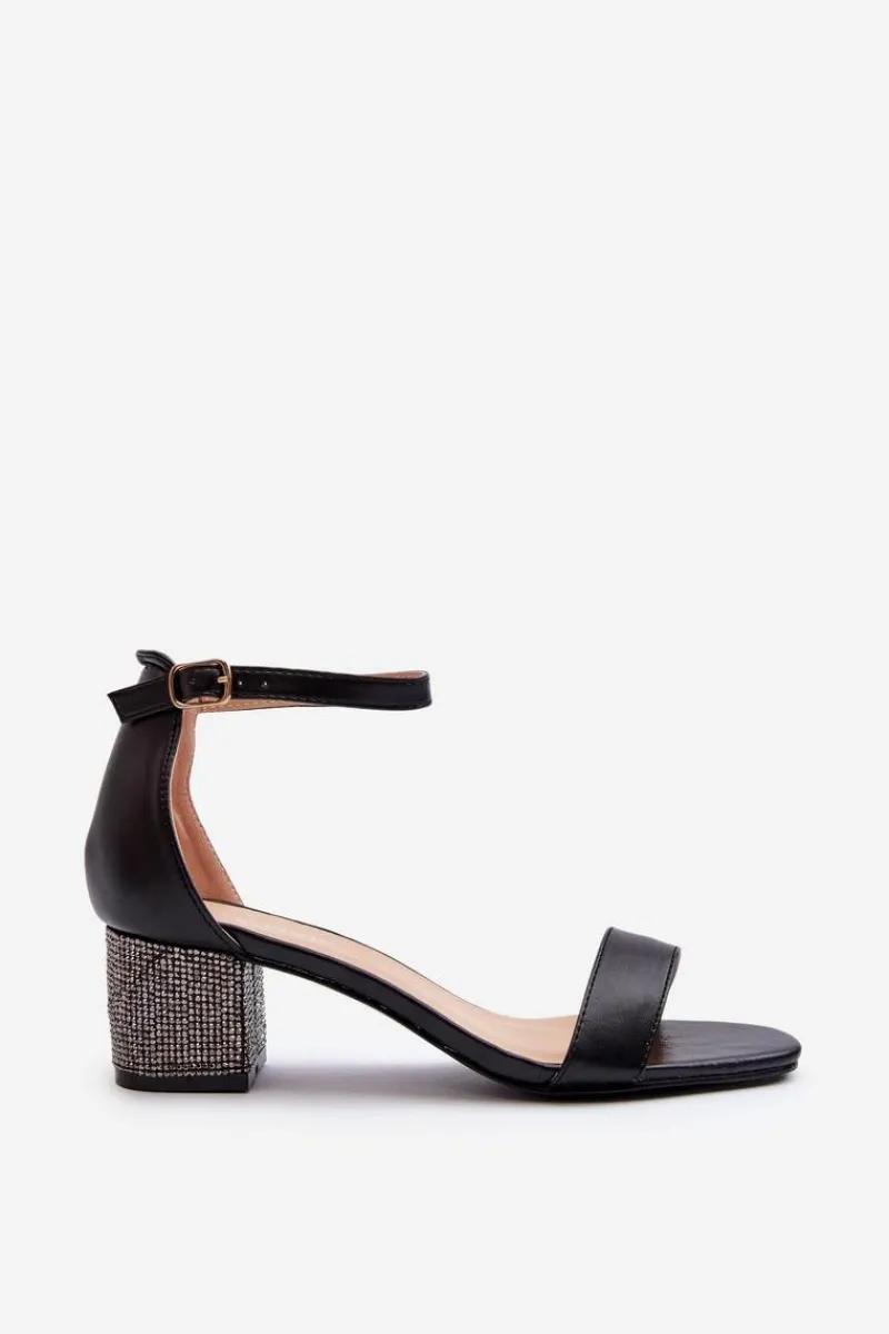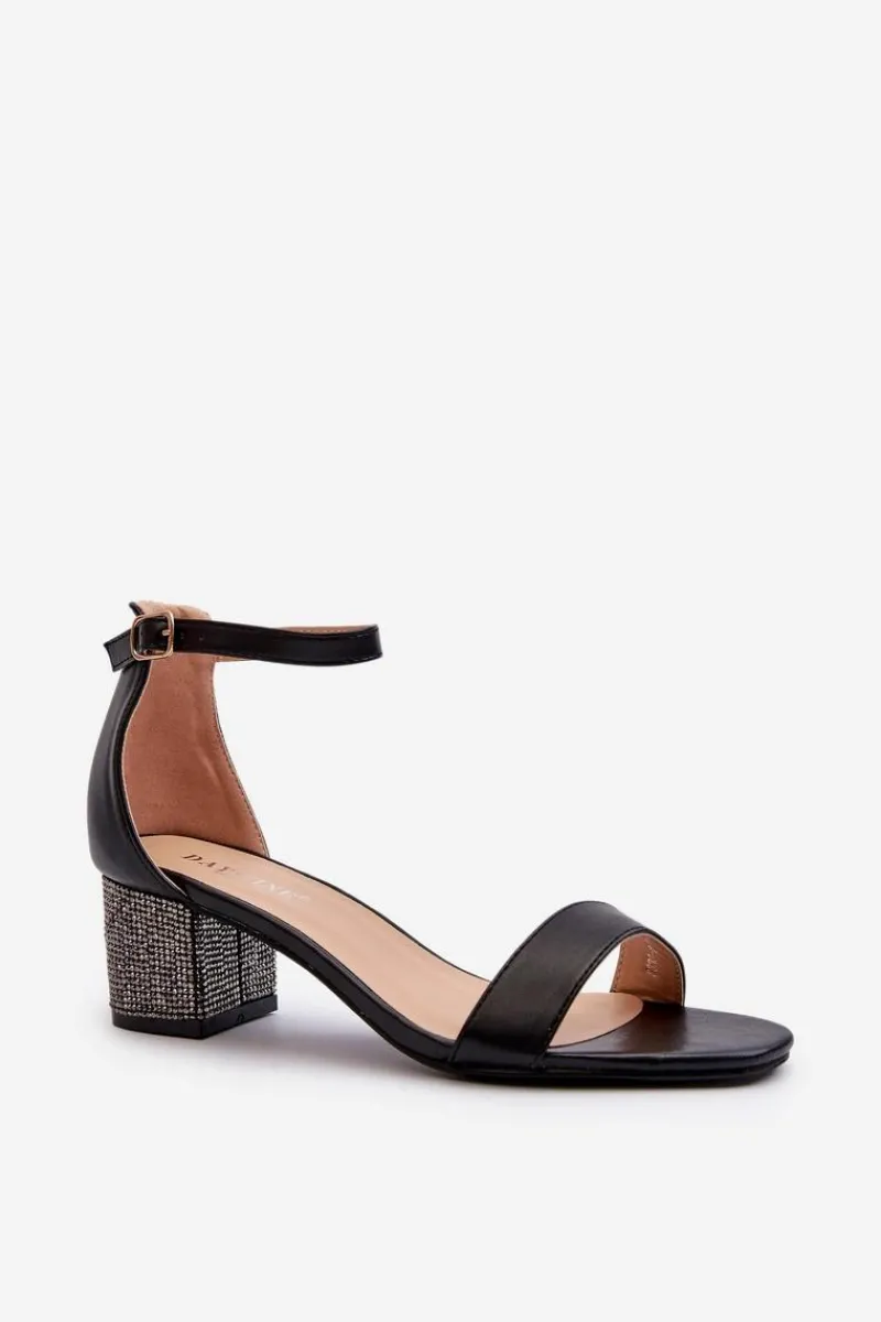Sandały Na Obcasie>Boto Sandały Damskie Z Eko Skóry Na Zdobionym Obcasie Czarne Wiatalia Czarny