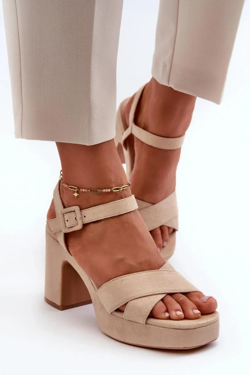 Damskie sandały wykonane z eko zamszu to połączenie elegancji i wygody. Osadzone na stabilnym słupku i platformie, zapewniają komfort noszenia przez cały dzień. Zapinane na regulowany pasek ze sprzączką, co pozwala na idealne dopasowanie do stopy. Te sandały są doskonałym wyborem do letnich stylizacji! Przy wyborze rozmiaru prosimy sugerować się tabelą rozmiarów.