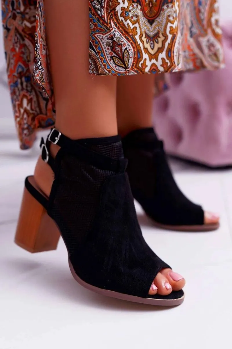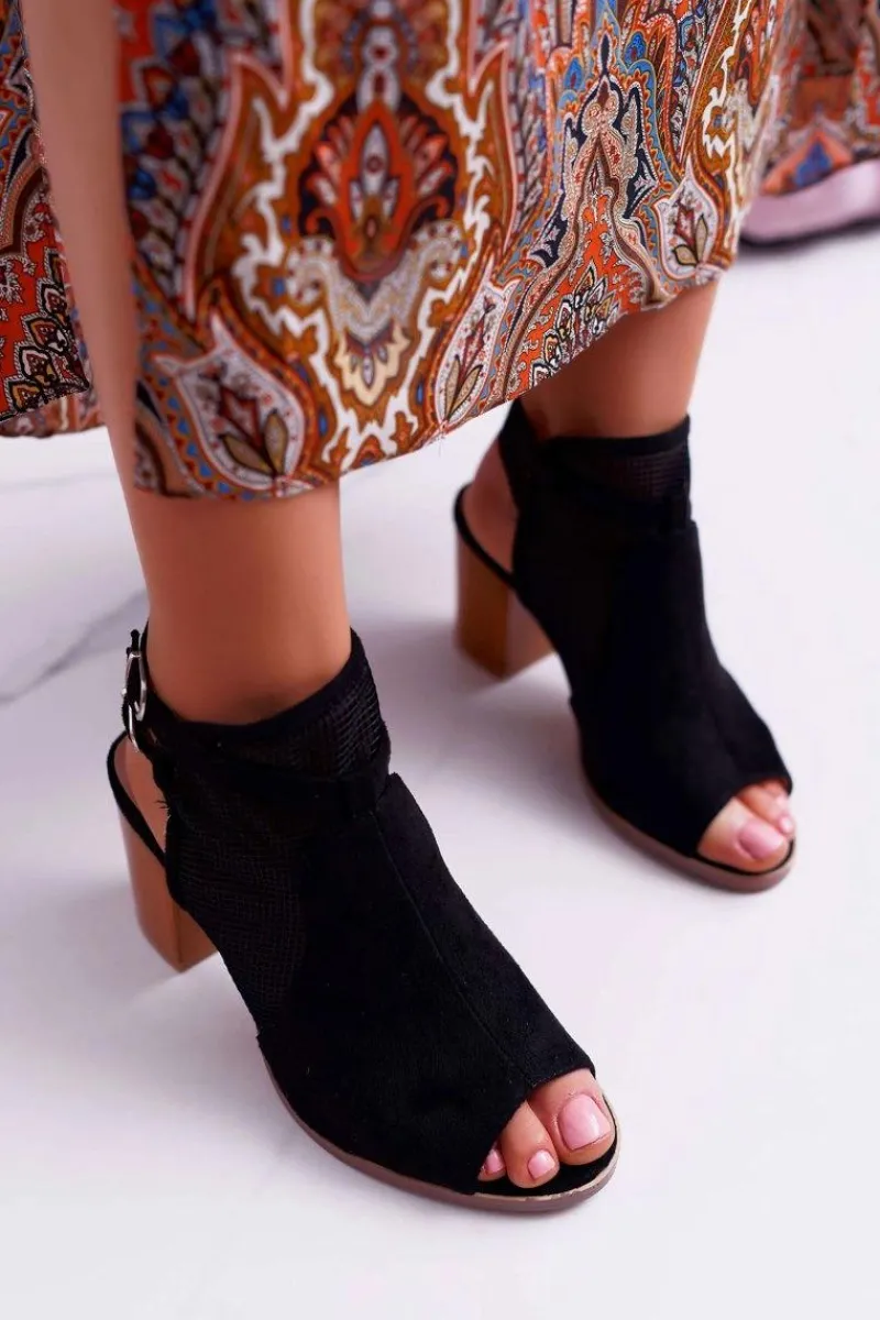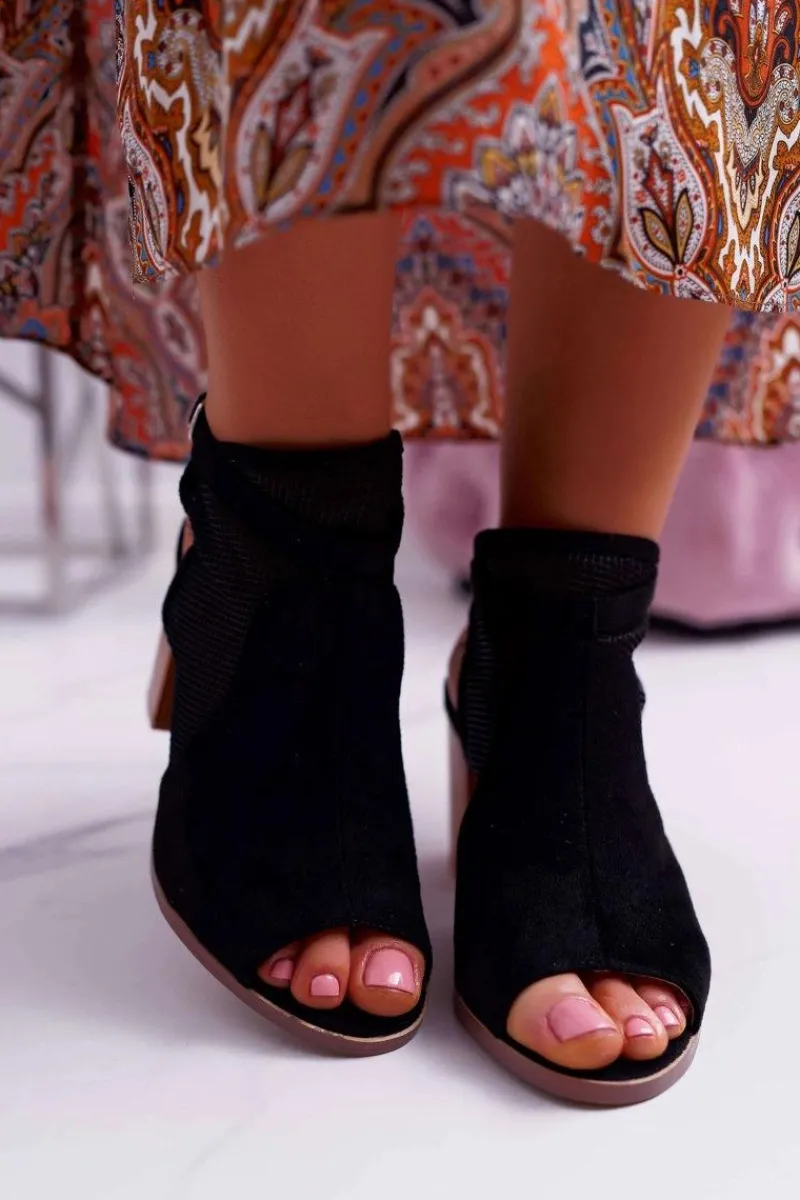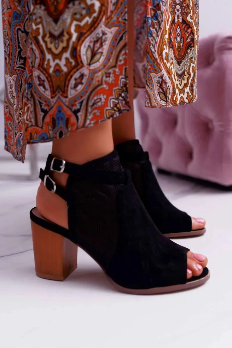 Sandały Na Obcasie>Boto Sandały Damskie Zamszowe Czarne Thido