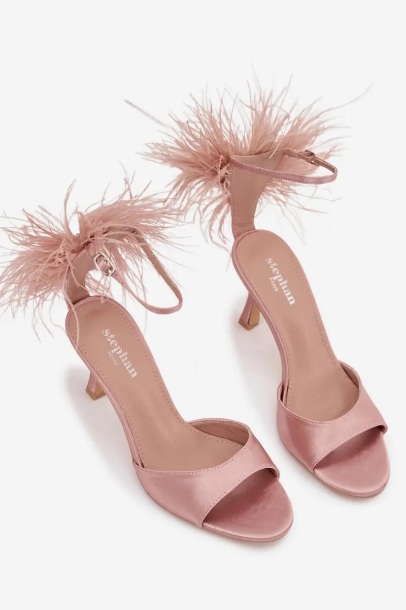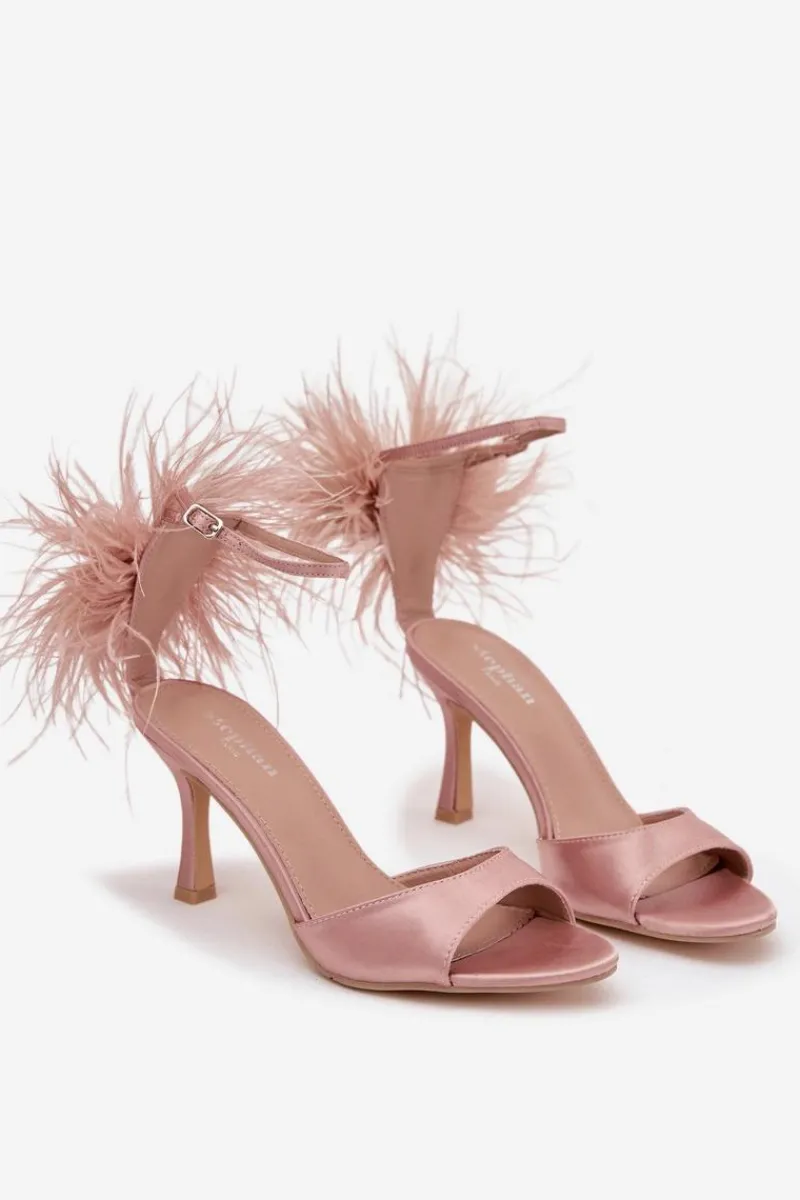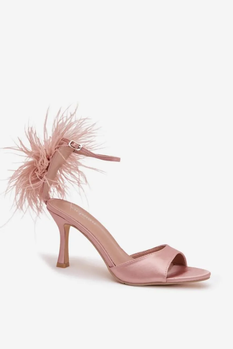 Sandały Na Obcasie>Boto Sandały Na Szpilce Z Piórami Brudny Róż Caelina Różowy