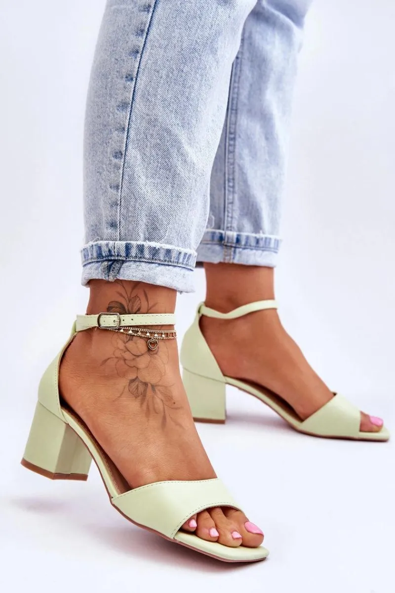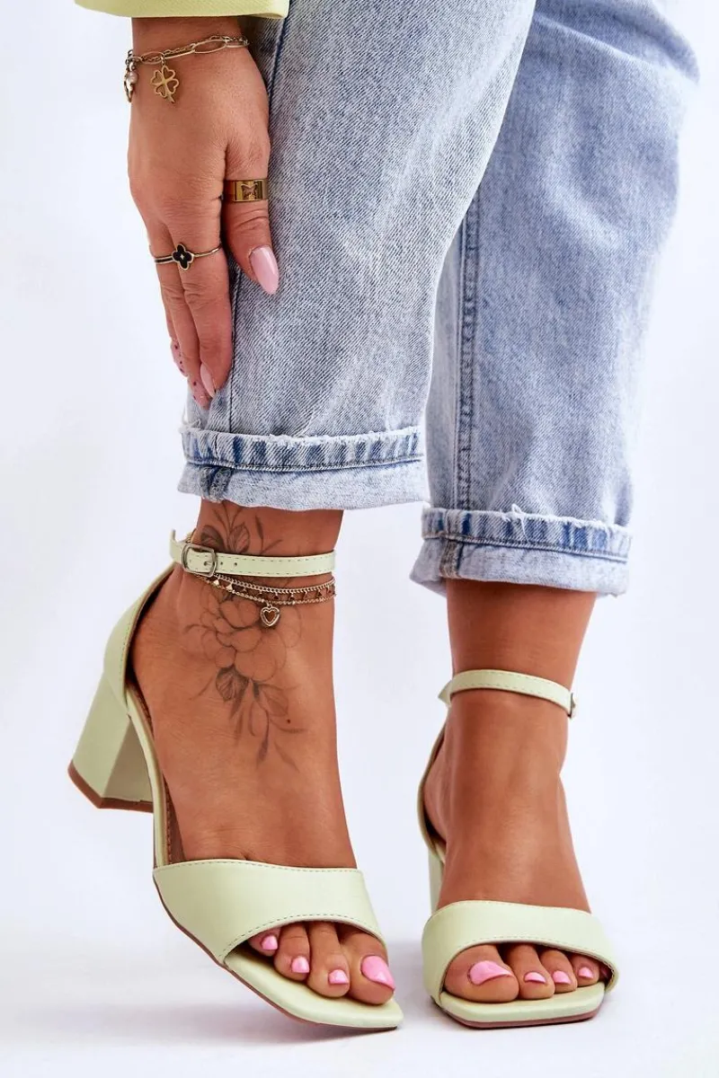 Sandały damskie zostały wykonane z eko skóry. Zostały osadzone na obcasie w postaci niskiego słupka. Posiadają odkryty, kwadratowy nosek oraz zakrytą piętą z usztywnianym zapiętkiem. Model ten jest zapinany na regulowany pasek ze sprzączką. Wkładka z eko skóry zapewni komfortowe użytkowanie. Przy wyborze rozmiaru prosimy sugerować się tabelą rozmiarów.