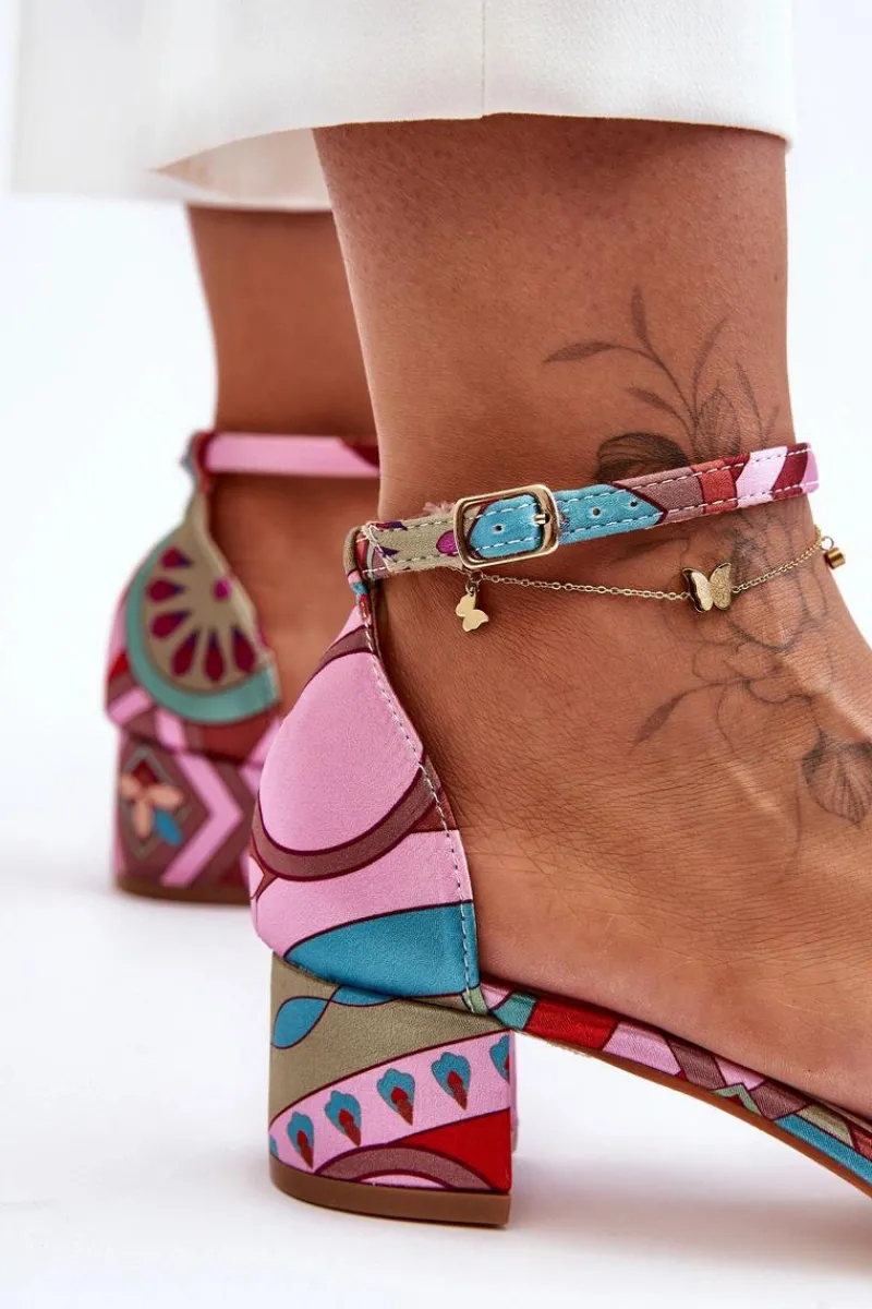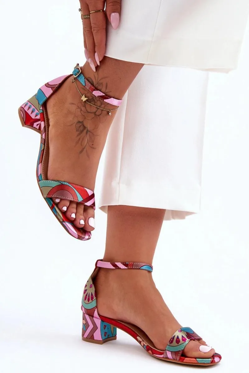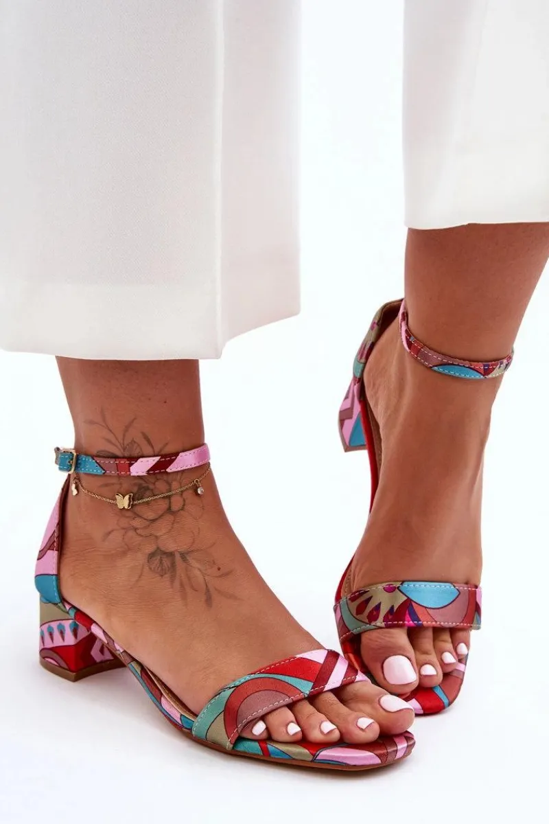 Sandały Na Obcasie>Boto Satynowe Sandałki Na Obcasie We Wzory Różowy Mix Inspire Me!