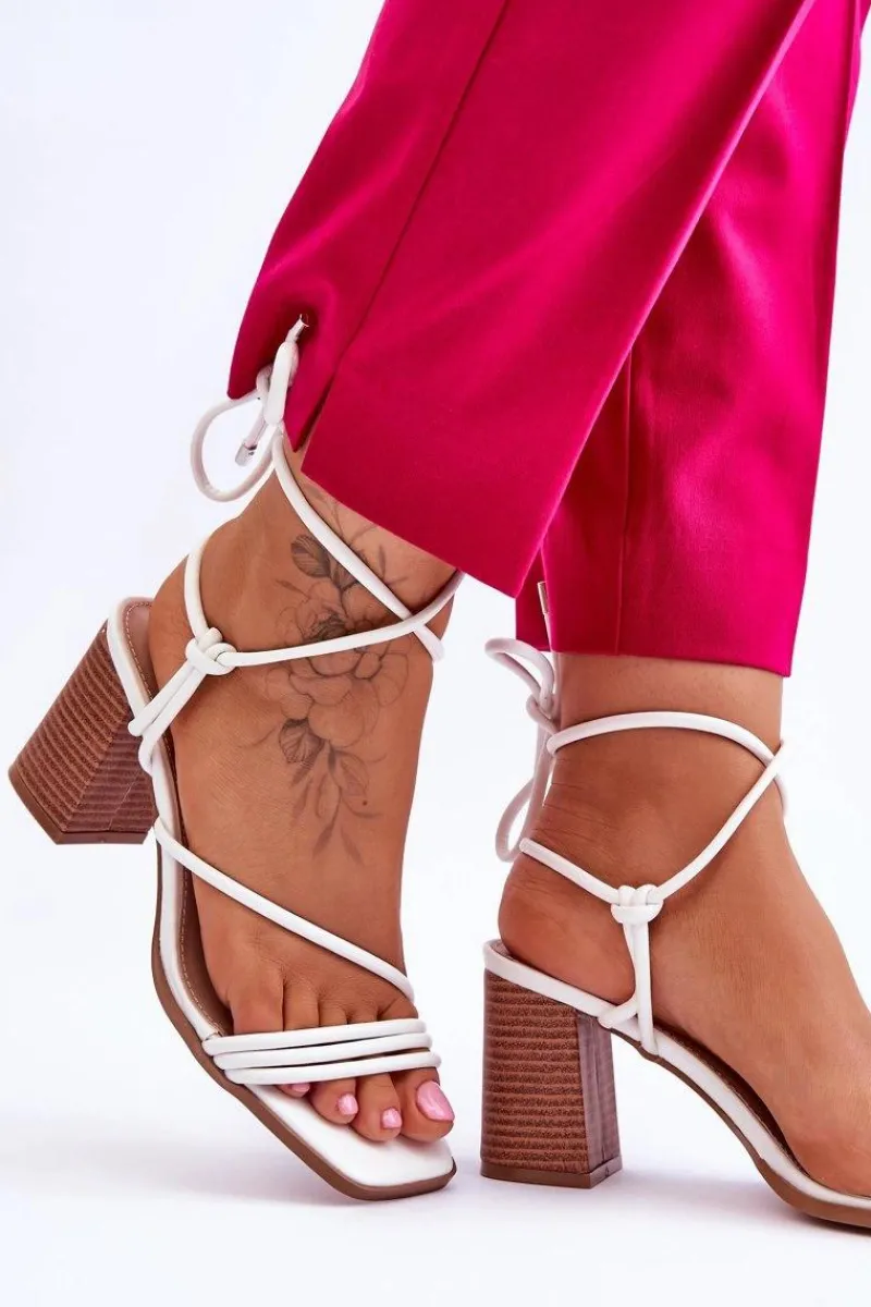 Niezwykłe sandałki na obcasie w postaci słupka świetnie sprawdzą się podczas upalnych dni. Idealnie będą prezentować się zarówno ze spodniami, jak i sukienkami. Buty zostały wykonane z eko skóry. Model ten posiada wiązanie wokół łydki. Sandałki posiadają odkryte palce oraz piętę. Miękka wkładka została wykonana z eko skóry. Ten model powinien być Twój! Przy wyborze rozmiaru prosimy sugerować się tabelą rozmiarów.