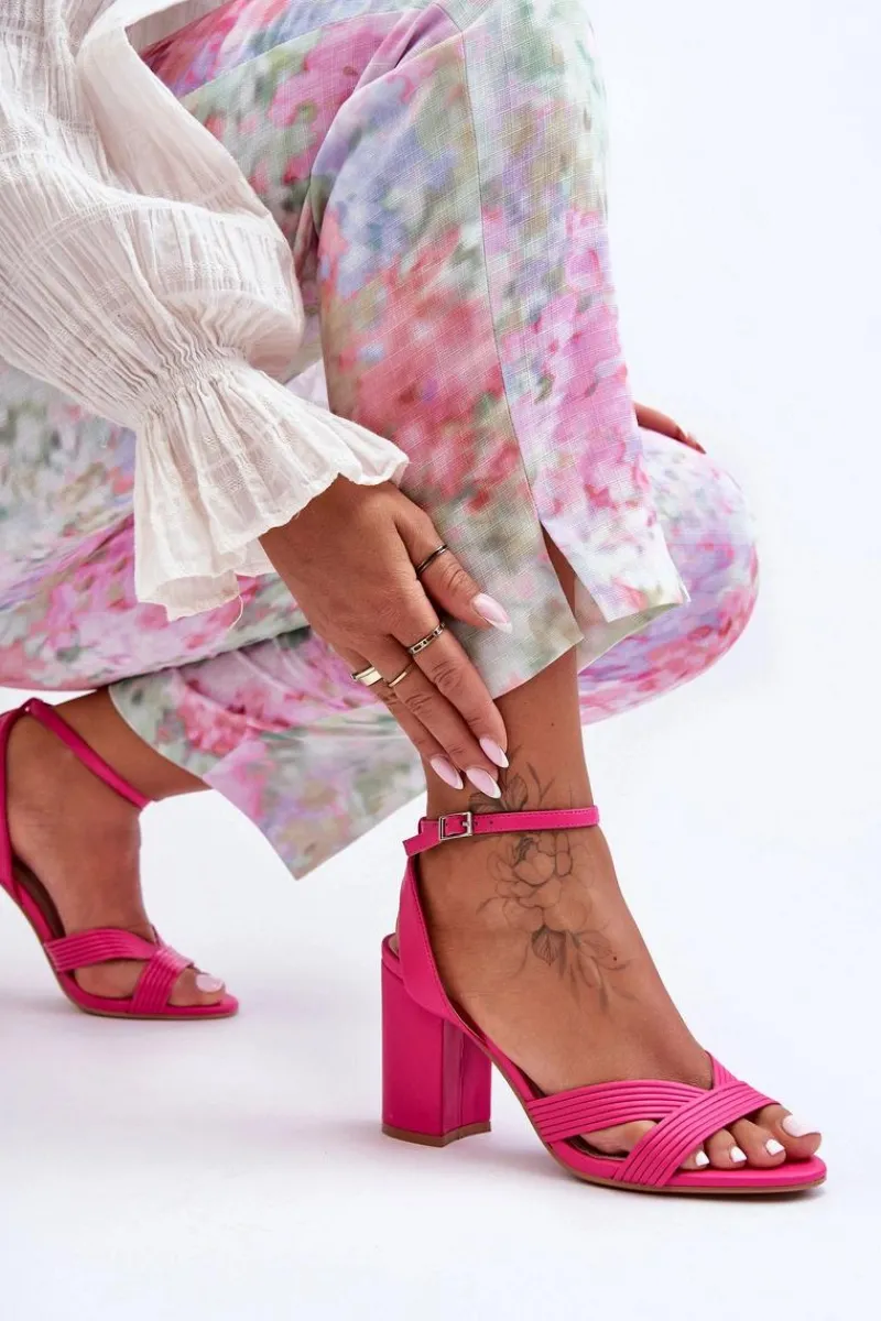 Te klasyczne sandały zostały wykonane z eko skóry. Model ten posiada zapinanie na regulowany pasek ze sprzączką. Sandałki osadzono na obcasie w postaci słupka. Miękka wkładka zapewni komfortowe użytkowanie. Fason ten pięknie prezentuje się na nodze! Przy wyborze rozmiaru prosimy sugerować się tabelą rozmiarów.