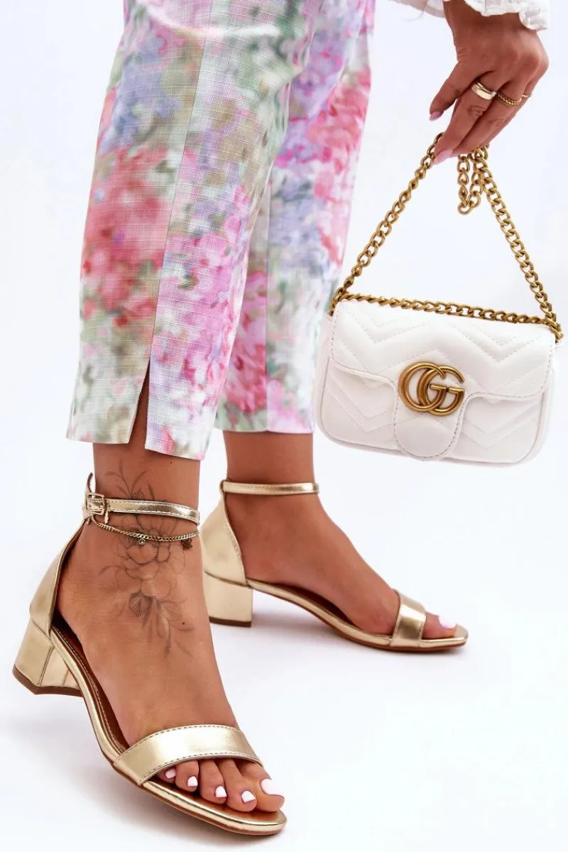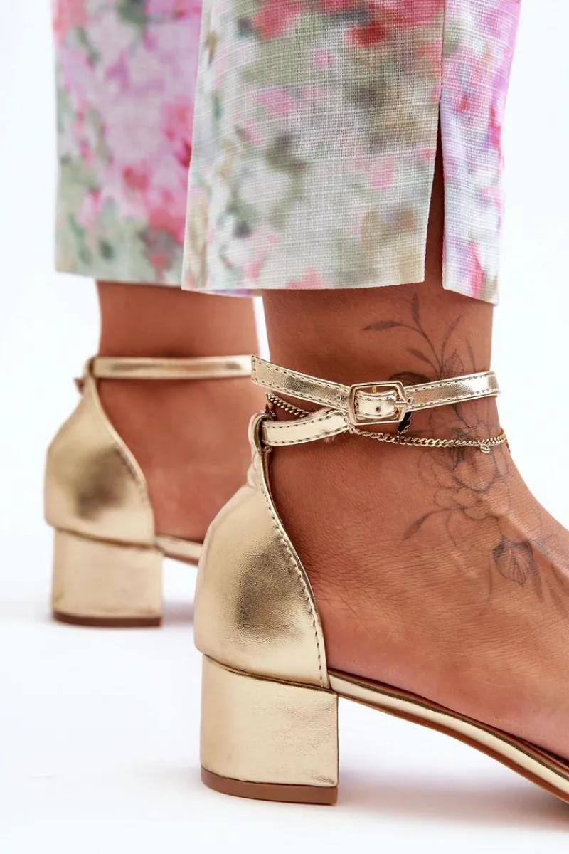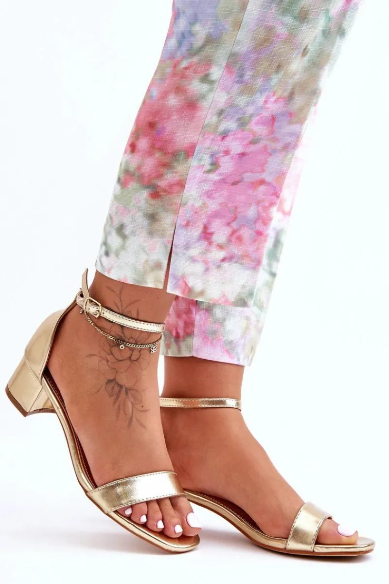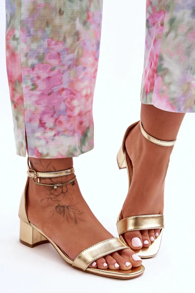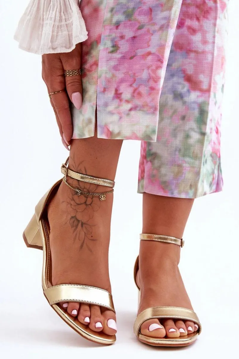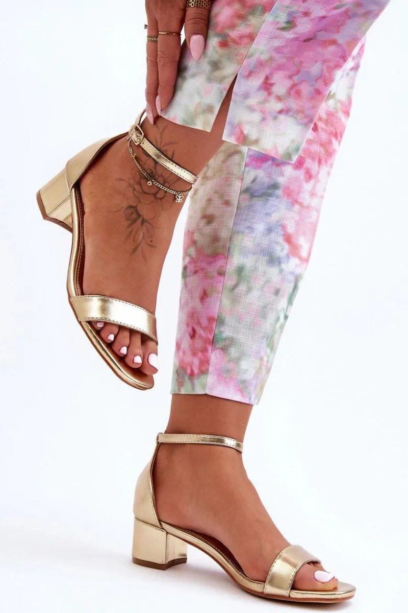 Sandały Na Obcasie>Boto Skórzane Sandałki Na Obcasie Gładkie Złote Inspire Me!