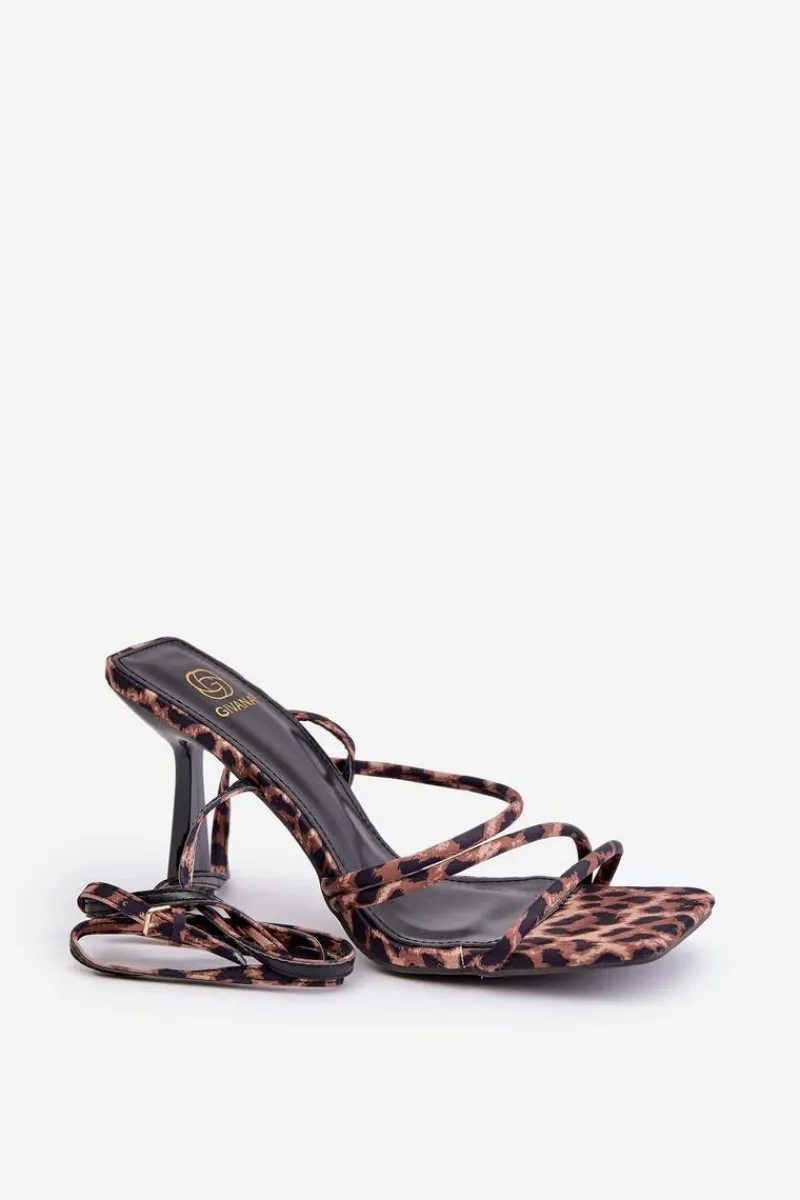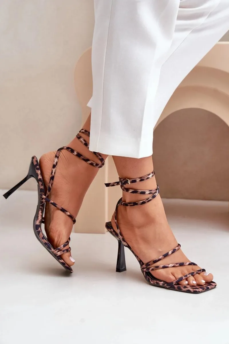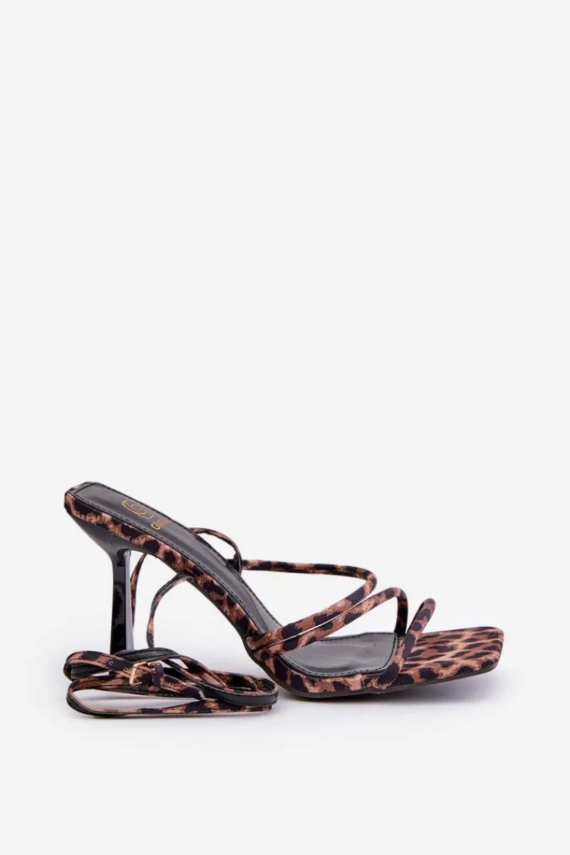 Sandały Na Obcasie>Boto Stylowe Sandały Na Szpilce Z Paskami Panterka Brązowe Saredi