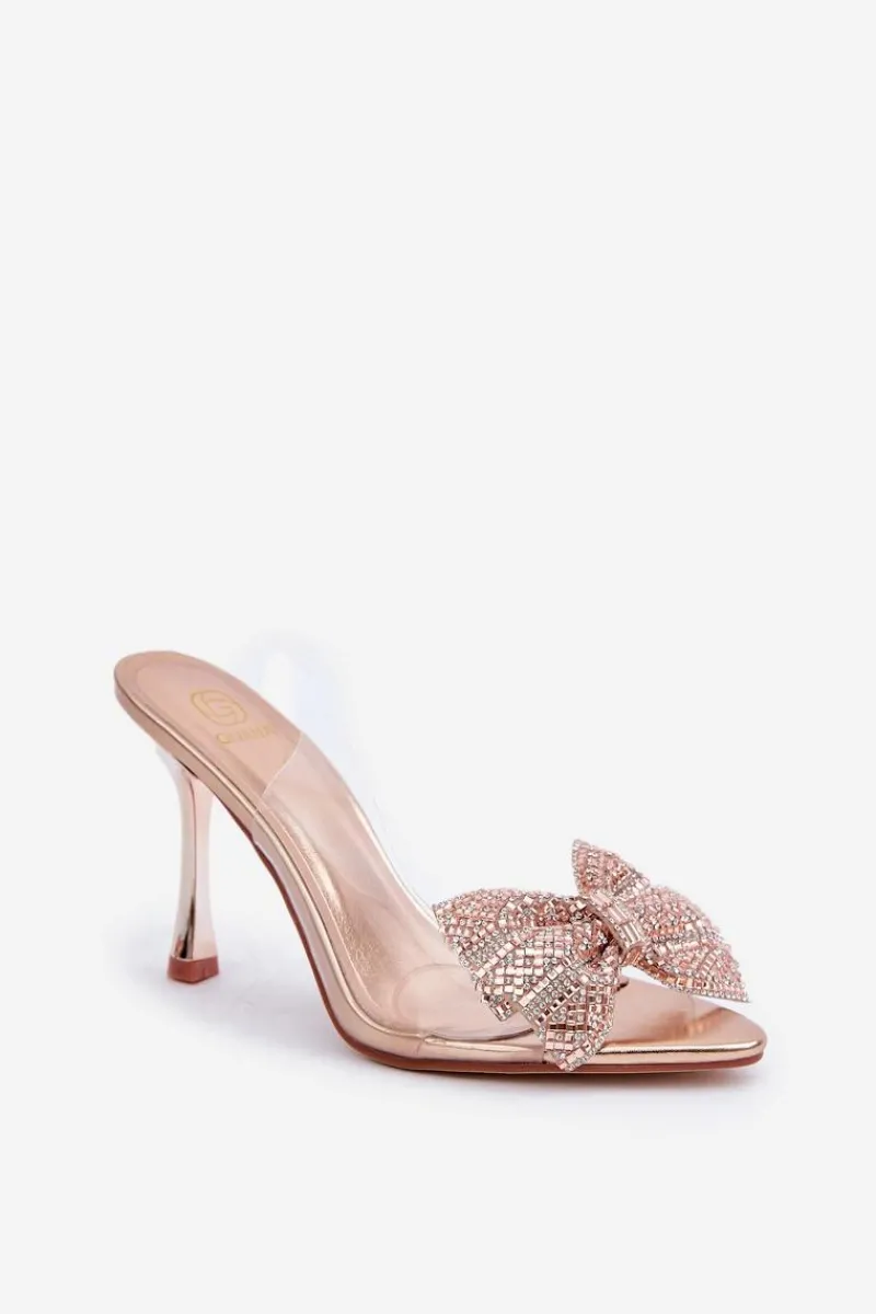 Eleganckie transparentne sandały na szpilce, które idealnie podkreślą wyjątkowy charakter Twojej stylizacji. Model wyróżnia się efektowną, błyszczącą kokardą z przodu, dodającą odrobinę glamour. Model ten doskonale komponują się z sukniami koktajlowymi oraz eleganckimi kompletami, tworząc szykowny i modny look. Przy wyborze rozmiaru prosimy sugerować się tabelą rozmiarów.