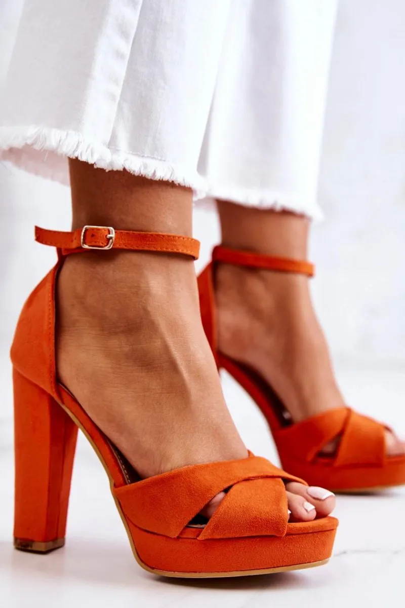 Świetne sandałki wykonane z zamszowej eko skóry. Posiadają wysoki obcas w postaci słupka oraz platformę. Regulowany pasek zapinany na sprzączkę. Idealny model na różnego rodzaju okazje! Sandałki posiadają eko skórzaną, miękką wkładkę. Koniecznie musisz je mieć! Przy wyborze rozmiaru prosimy kierować tabelą rozmiarów.