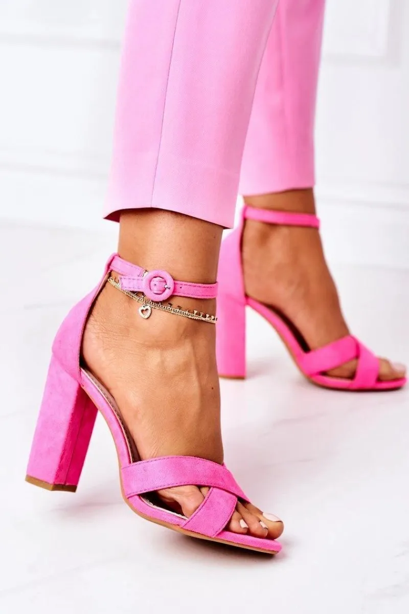 Klasyczne sandały na słupku wykonane z eko zamszu. Modny fason dostępny w wielu pięknych kolorach! Przy wyborze rozmiaru prosimy sugerować się tabelą rozmiarów.