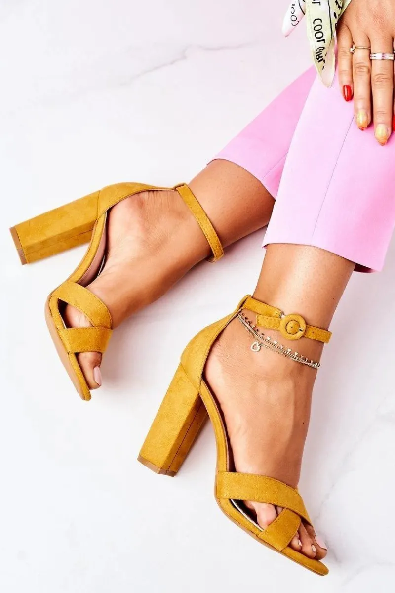 Klasyczne sandały na słupku wykonane z eko zamszu. Modny fason dostępny w wielu pięknych kolorach! Przy wyborze rozmiaru prosimy sugerować się tabelą rozmiarów.