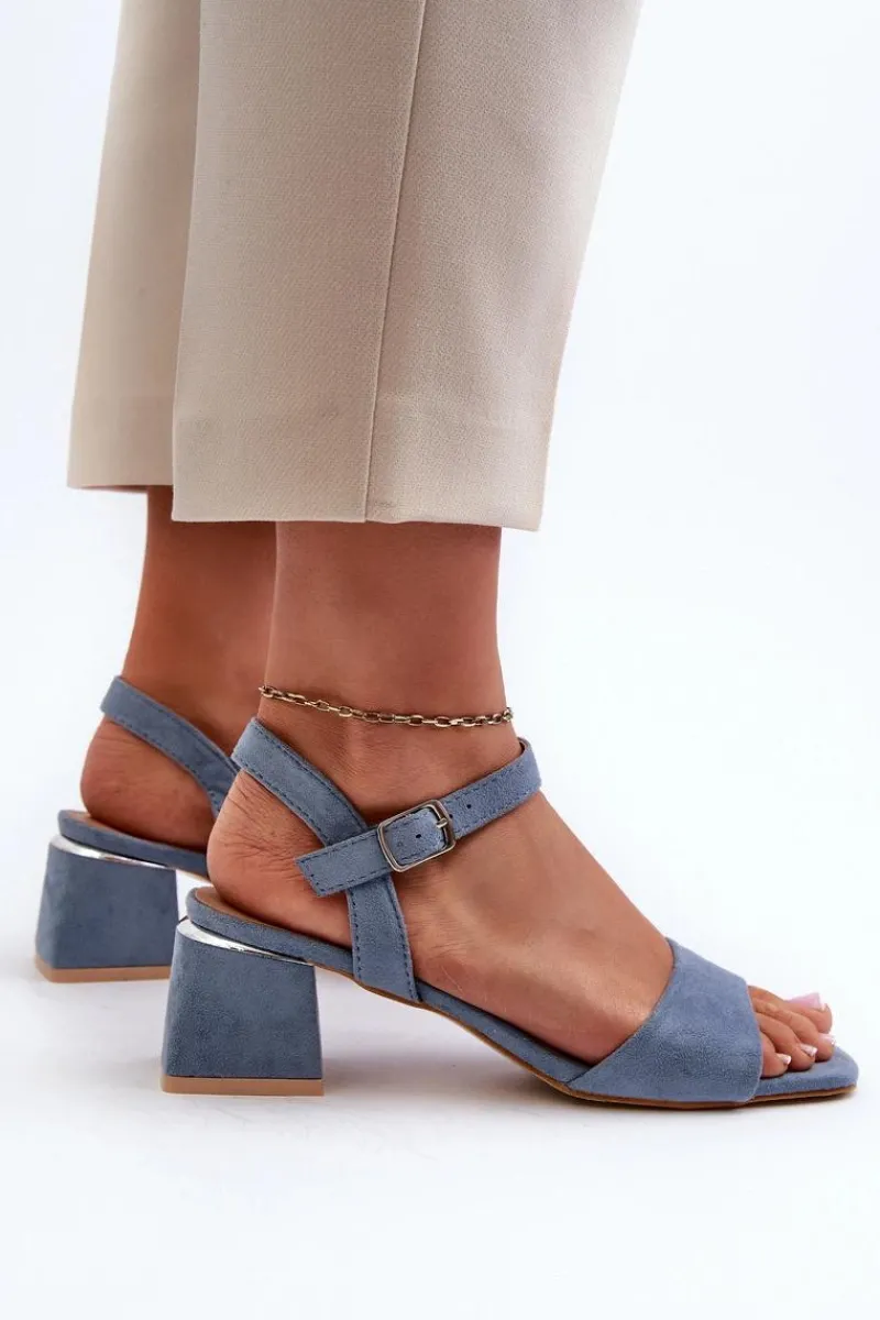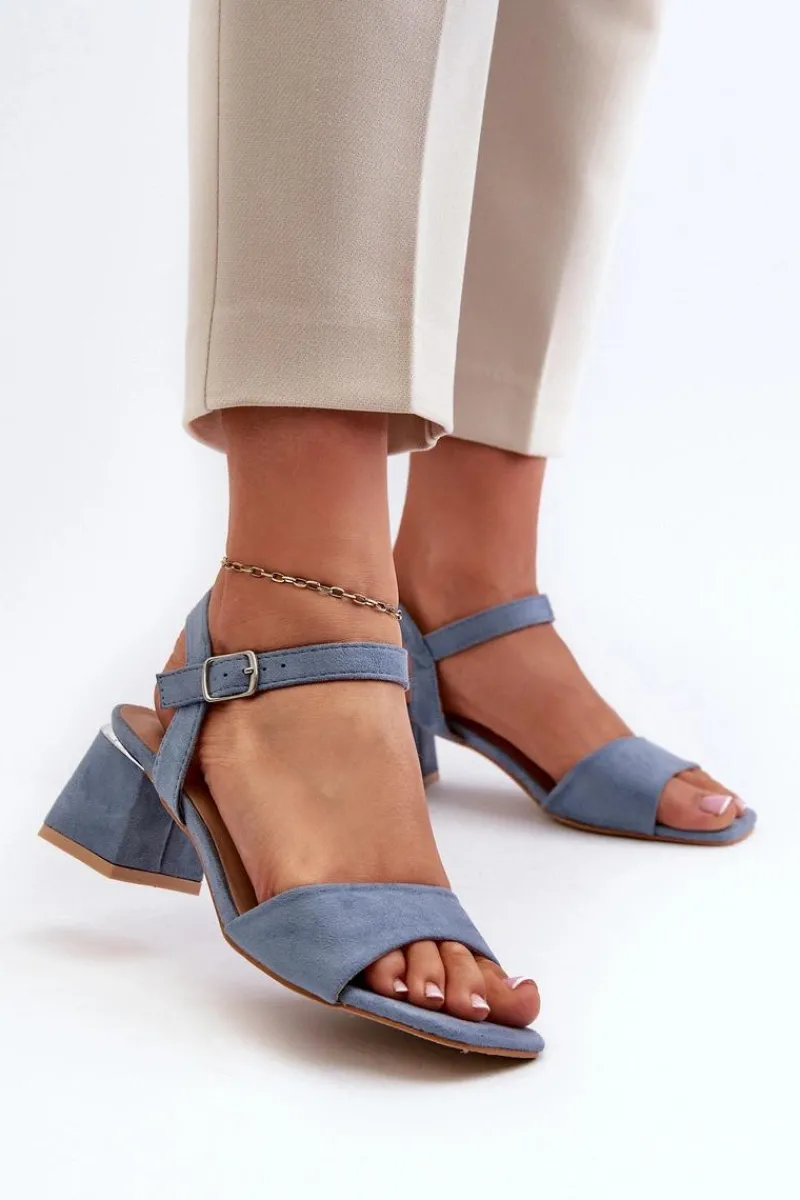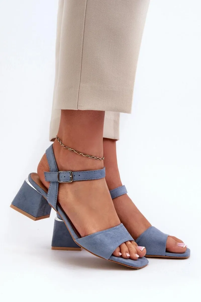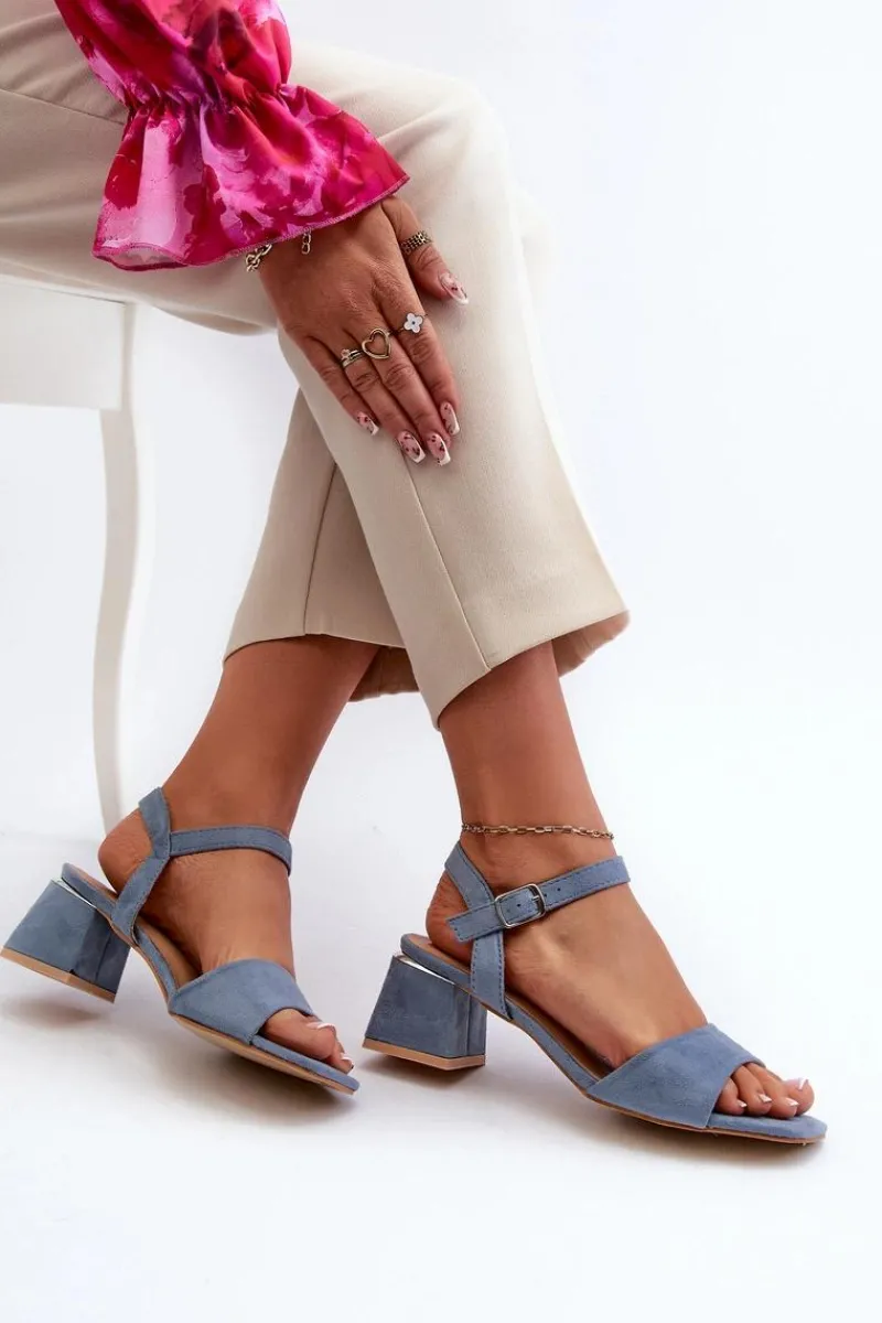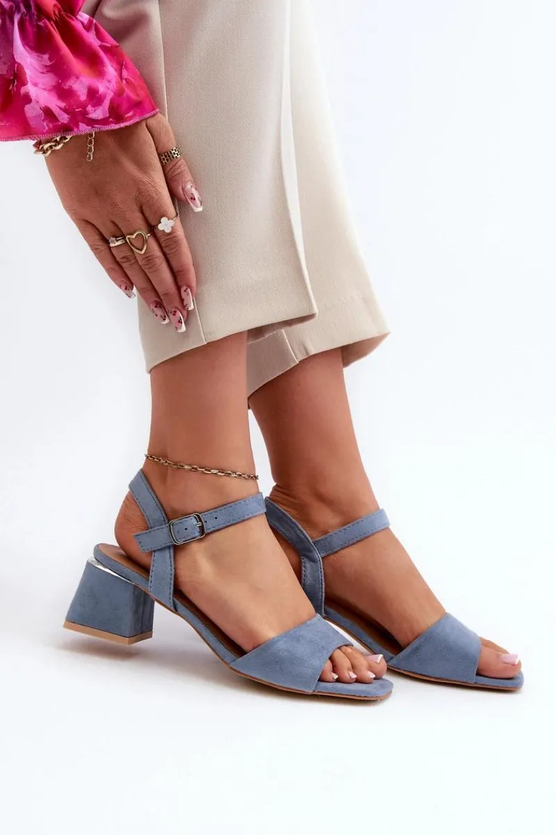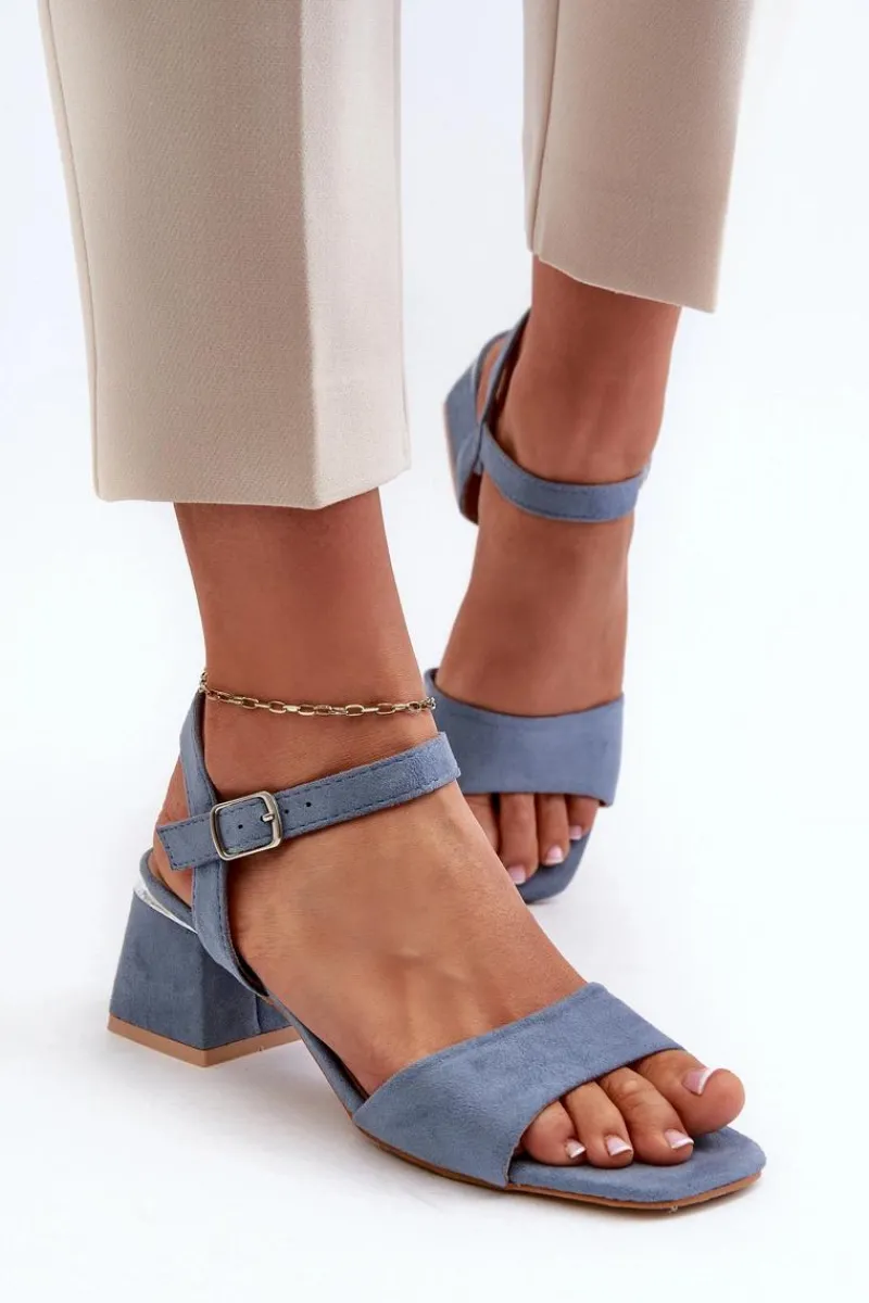 Sandały damskie wykonane z miłego w dotyku eko zamszu. Obcas w postaci klocka zapewnia stabilność. Zapinane na regulowany pasek ze sprzączką, gwarantują idealne dopasowanie do stopy. Idealne do letnich sukienek! Przy wyborze rozmiaru prosimy sugerować się tabelą rozmiarów.