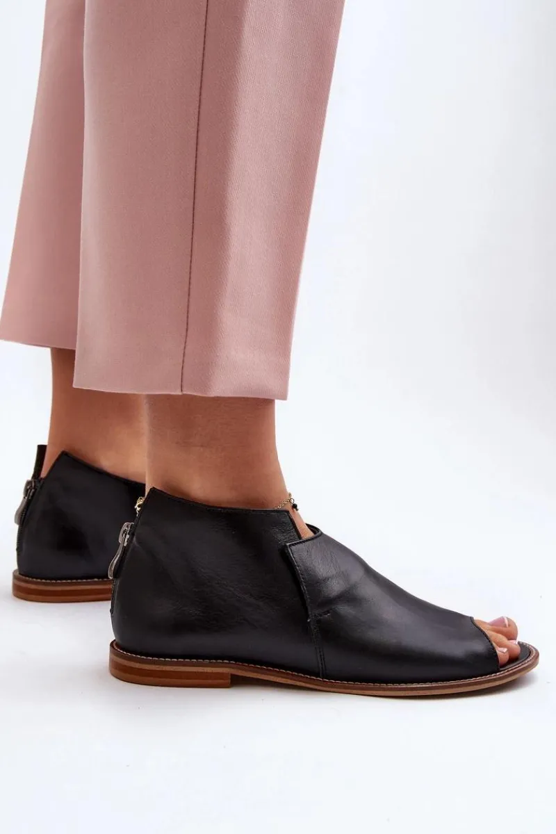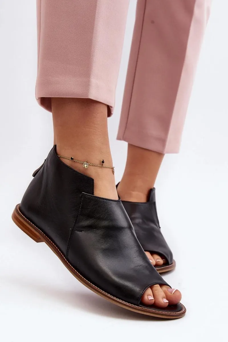 Eleganckie sandały marki Laura Messi. Buty wykonane są ze skóry naturalnej z dbałością o każdy detal. Osadzone na płaskim obcasie. Model z zakrytą piętą. Z tyłu suwak. Skózana wkładka zapewni wygodę podczas użytkowania. Ten niezwykle stylowy fason koniecznie musi znaleźć się w Twojej letniej garderobie! Przy wyborze rozmiaru prosimy sugerować się tabelą rozmiarów.