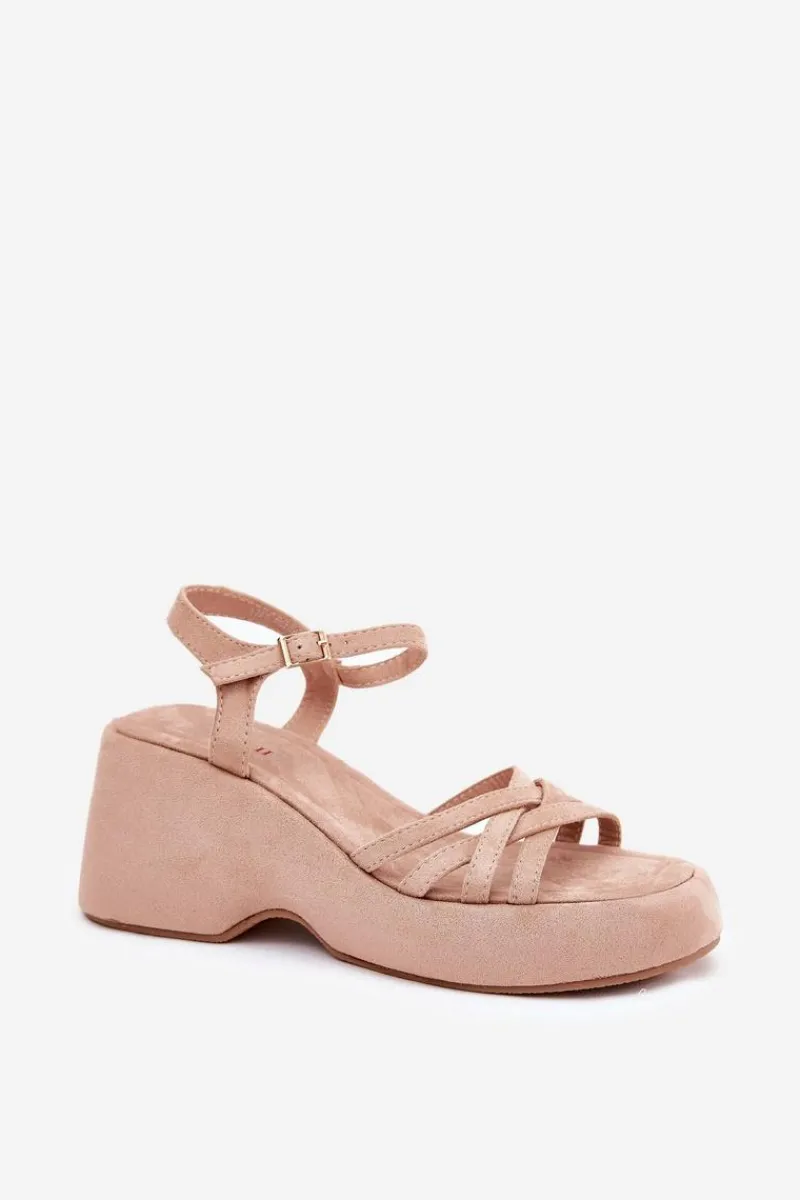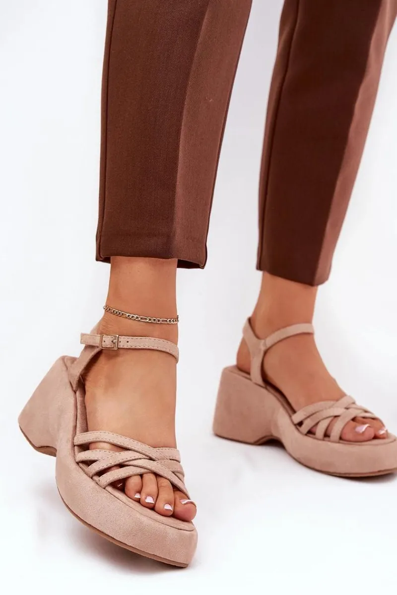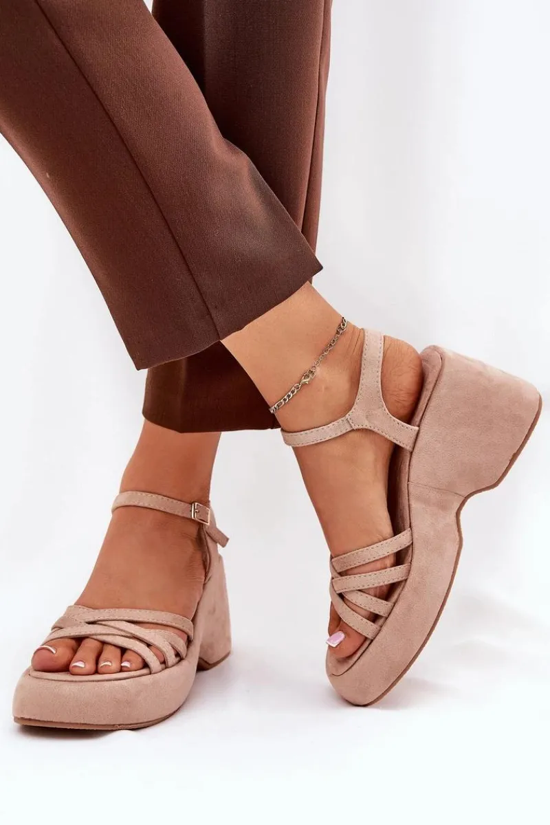 Sandały damskie na platformie i koturnie to nie tylko modne obuwie, ale także gwarancja wygody przez cały dzień. Wykonane z miłego w dotyku eko zamszu. Regulowany pasek ze sprzączką zapewnia odpowiednie dopasowanie, a miękka wkładka sprawia, że chodzenie w nich to czysta przyjemność, nawet przy długotrwałym użytkowaniu. Doskonały wybór na ciepłe dni, które będą pasować do zarówno casualowych, jak i bardziej eleganckich stylizacji. Przy wyborze rozmiaru prosimy kierować tabelą rozmiarów.
