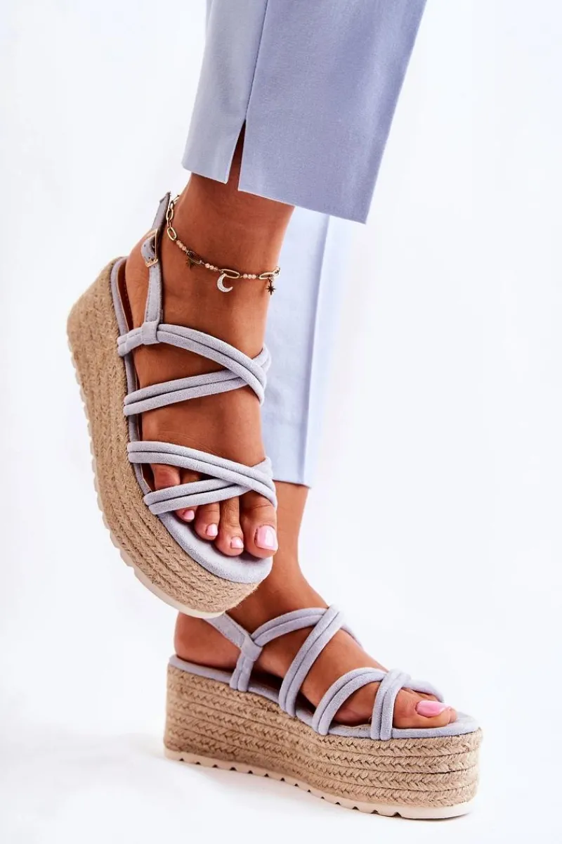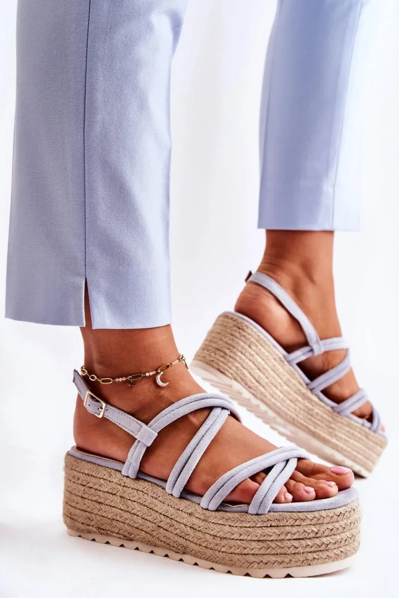 Piękne oraz wygodne sandały na platformie. Sandały zostały wykonane z eko zamszu, posiadają miękką wkładkę z eko skóry. Wyjątkowy model wzbogaci Twoją letnią garderobę! Przy wyborze rozmiaru prosimy sugerować się tabelą rozmiarów.