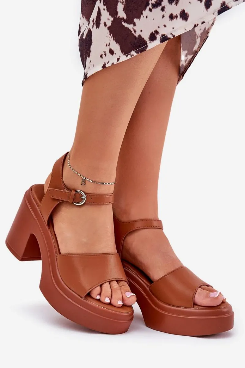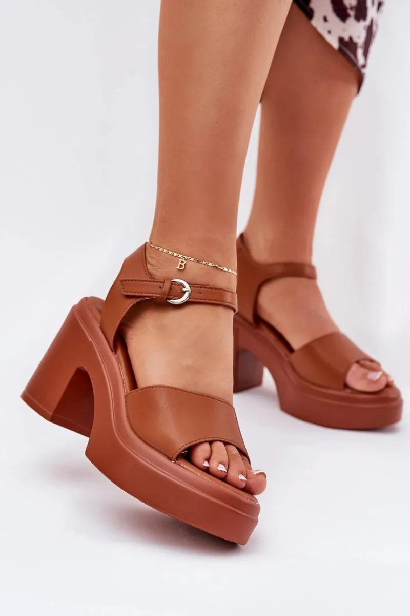 Sandały damskie wykonane ze skóry ekologicznej. Platforma oraz masywny obcas w postaci słupka dodają pewności kroku, jednocześnie zapewniając stabilność. Zapinane wokół kostki na sprzączkę z regulowanym paskiem. Doskonałe na wiele różnych okazji! Przy wyborze rozmiaru prosimy sugerować się tabelą rozmiarów.