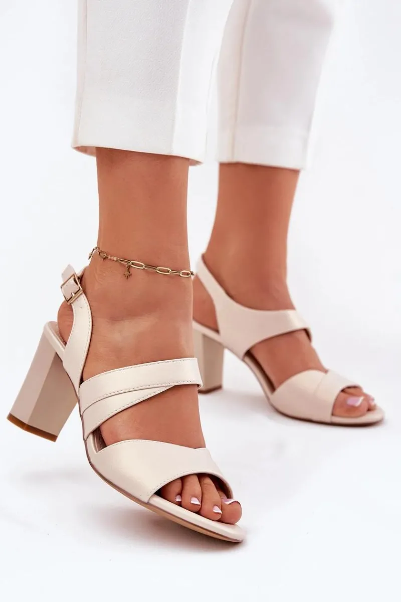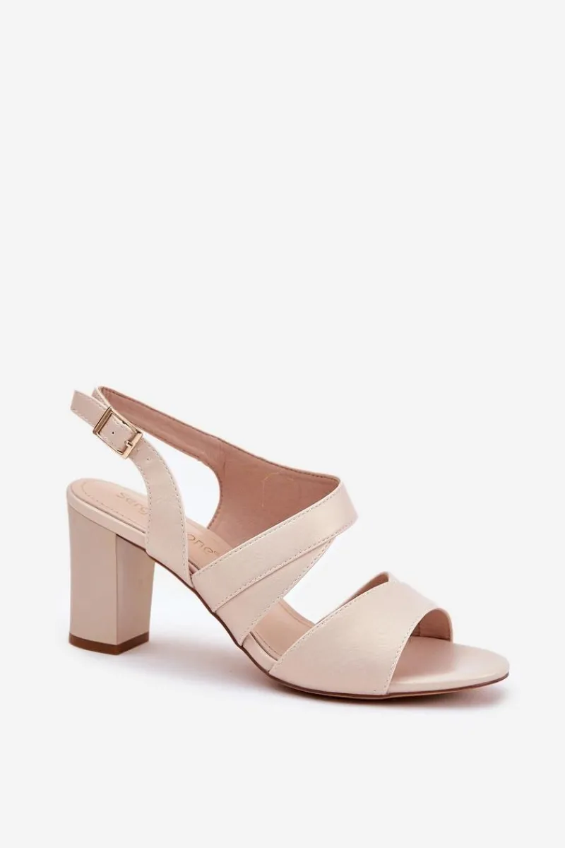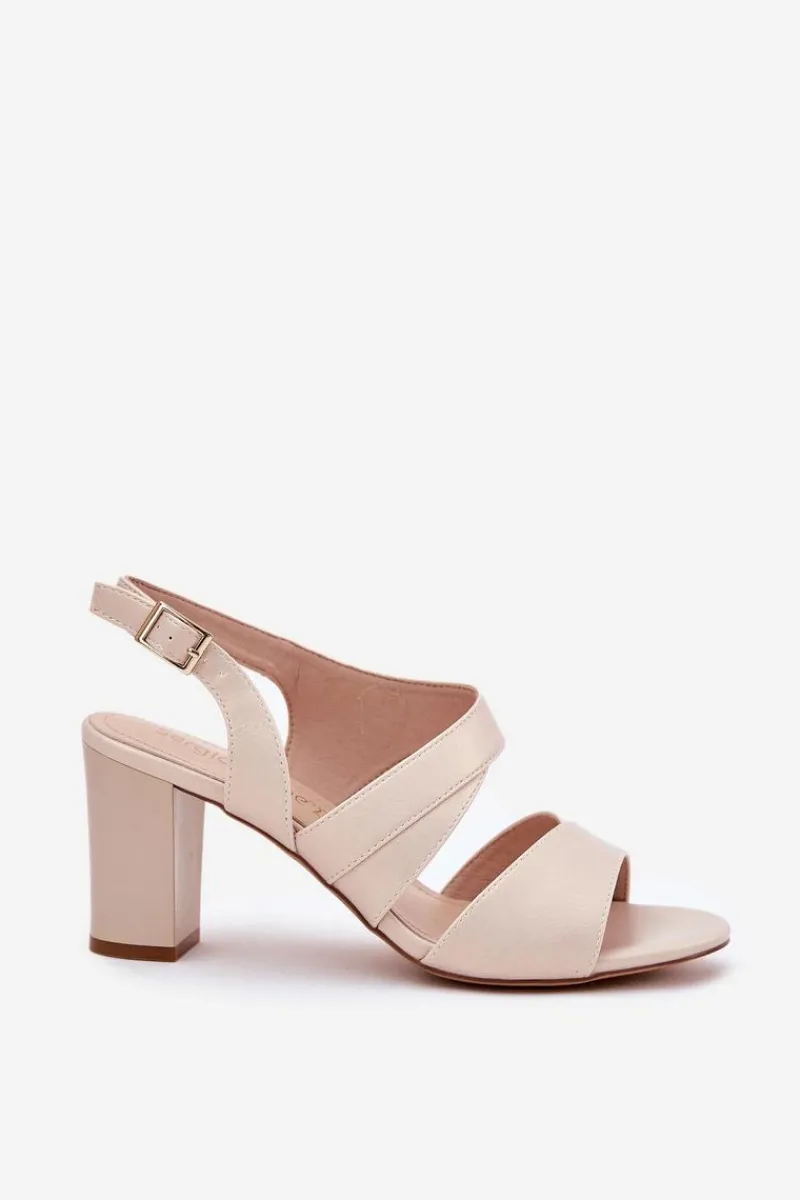 Sandały Na Słupku|Sandały Na Obcasie>Buty Sergio Leone Sandały Damskie Na Słupku Sergio Leone SK866 Beżowe