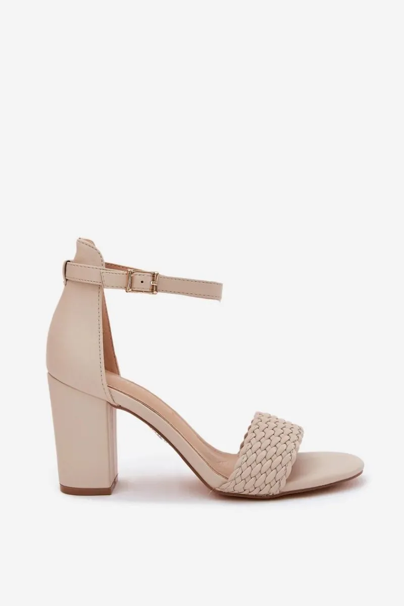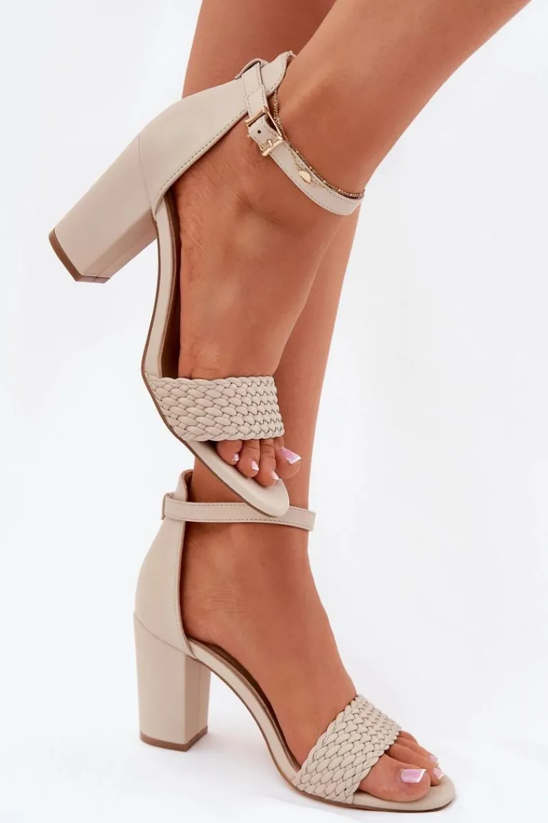 Sandały damskie wykonane z eko skóry to elegancka propozycja na ciepłe dni. Osadzone na obcasie w formie słupka, zapewniają stabilność i wygodę. Z przodu sandałów znajduje się pasek z plecionką, który dodaje im wyjątkowego charakteru. Zapinane na sprzączkę, umożliwiają idealne dopasowanie do stopy, a skórzana wkładka zapewnia komfort przez cały dzień. Idealne na różne okazje. Przy wyborze rozmiaru prosimy sugerować się tabelą rozmiarów.