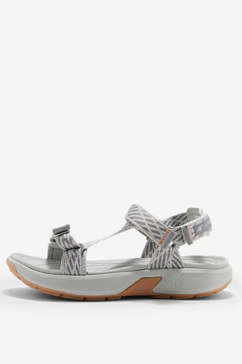 Wygodne sandały damskie marki 4F. Lekka cholewka zapewnia swobodę ruchów, a miękka wyściółka dodaje komfortu podczas noszenia. Potrójne zapięcie paskami na rzep gwarantuje idealne dopasowanie do stopy. Podeszwa z pianki CM-EVA zapewnia doskonałą amortyzację i stabilność, chroniąc stopy przed zmęczeniem nawet podczas długotrwałego noszenia. Dodatkowo gumowa podeszwa z głębokim bieżnikiem zapewnia doskonałą przyczepność na zróżnicowanym podłożu, co sprawia, że te sandały są idealnym wyborem zarówno na letnie spacery, jak i bardziej aktywne aktywności na świeżym powietrzu. Przy wyborze rozmiaru prosimy sugerować się tabelą rozmiarów.