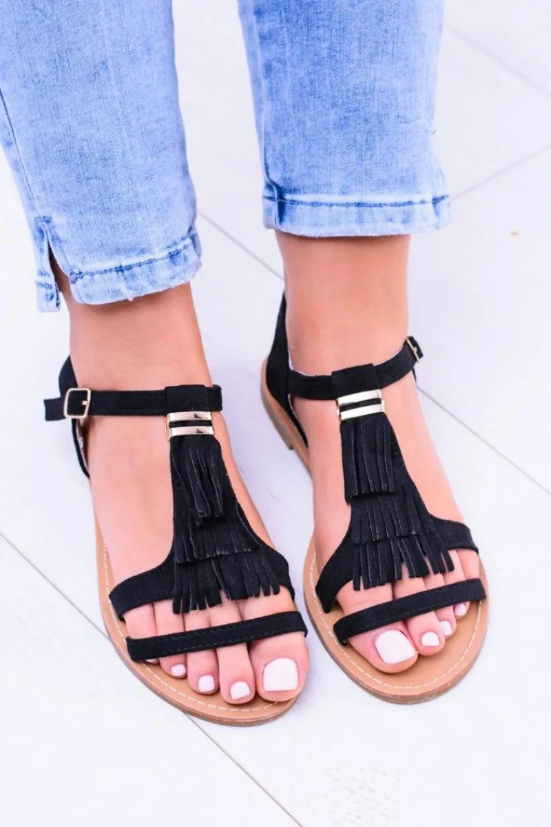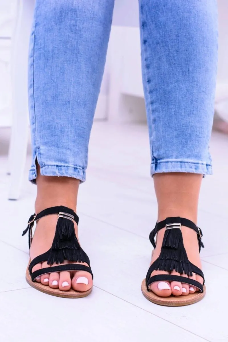 Sandały Płaskie>Boto Damskie Eleganckie Płaskie Sandałki Memi Czarne