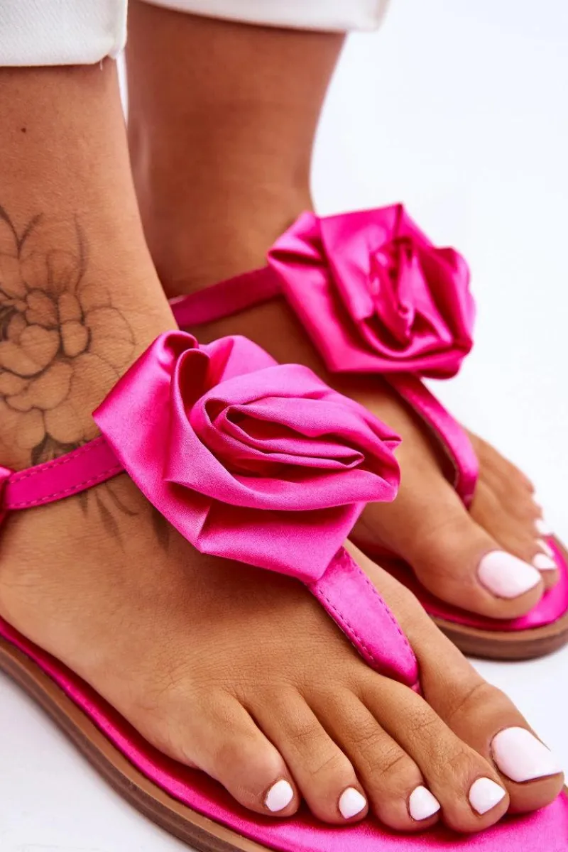 Sandały Płaskie>Boto Damskie Sandały Japonki Z Materiałową Różą Fuksja Carisma Różowy