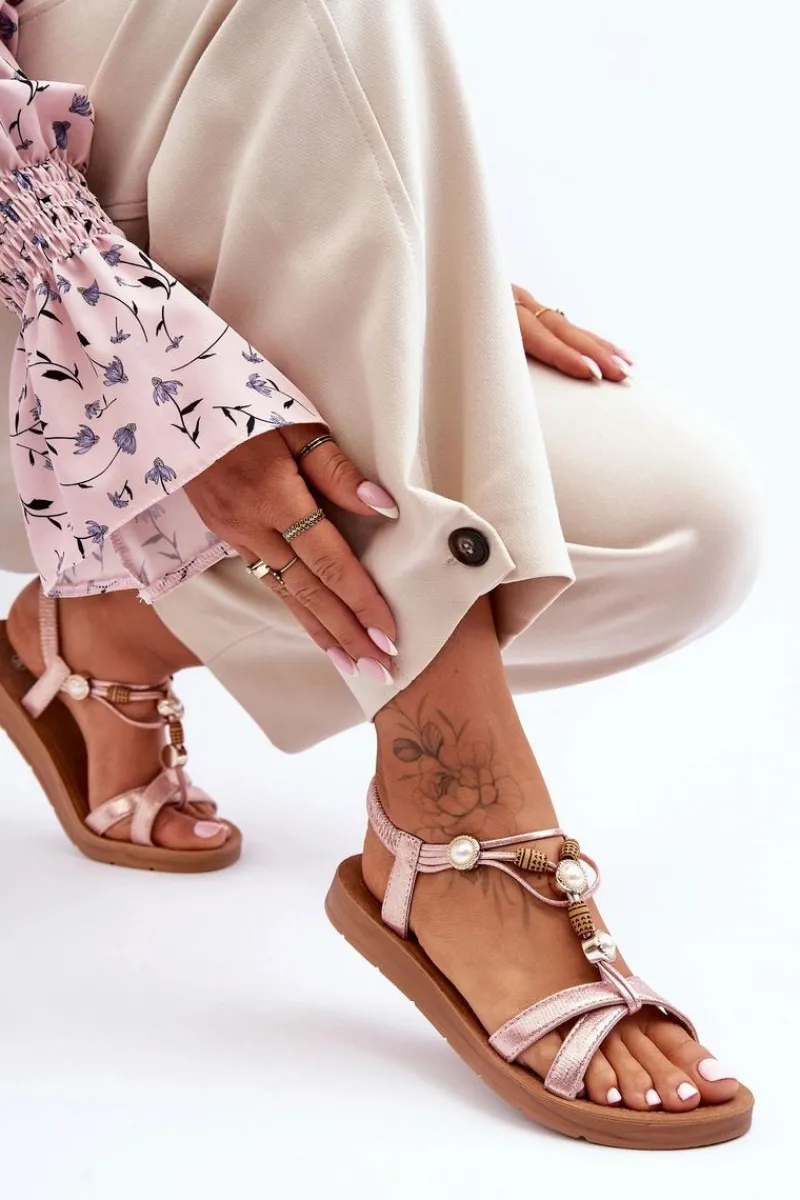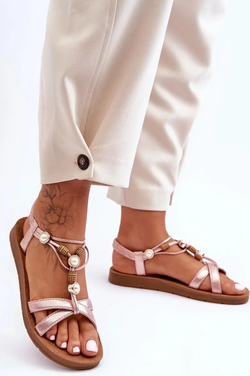 Wygodne, błyszczące damskie sandały ozdobione koralikami. Idealne na upalne dni! Delikatna platforma świetnie sprawdzi się także podczas wycieczek po piaszczystej plaży czy spacerze po mieście. Wykonane z materiału tekstylnego. Koniecznie sprawdź pozostałe modele damskich sandałek! Przy wyborze rozmiaru prosimy sugerować się tabelą rozmiarów.