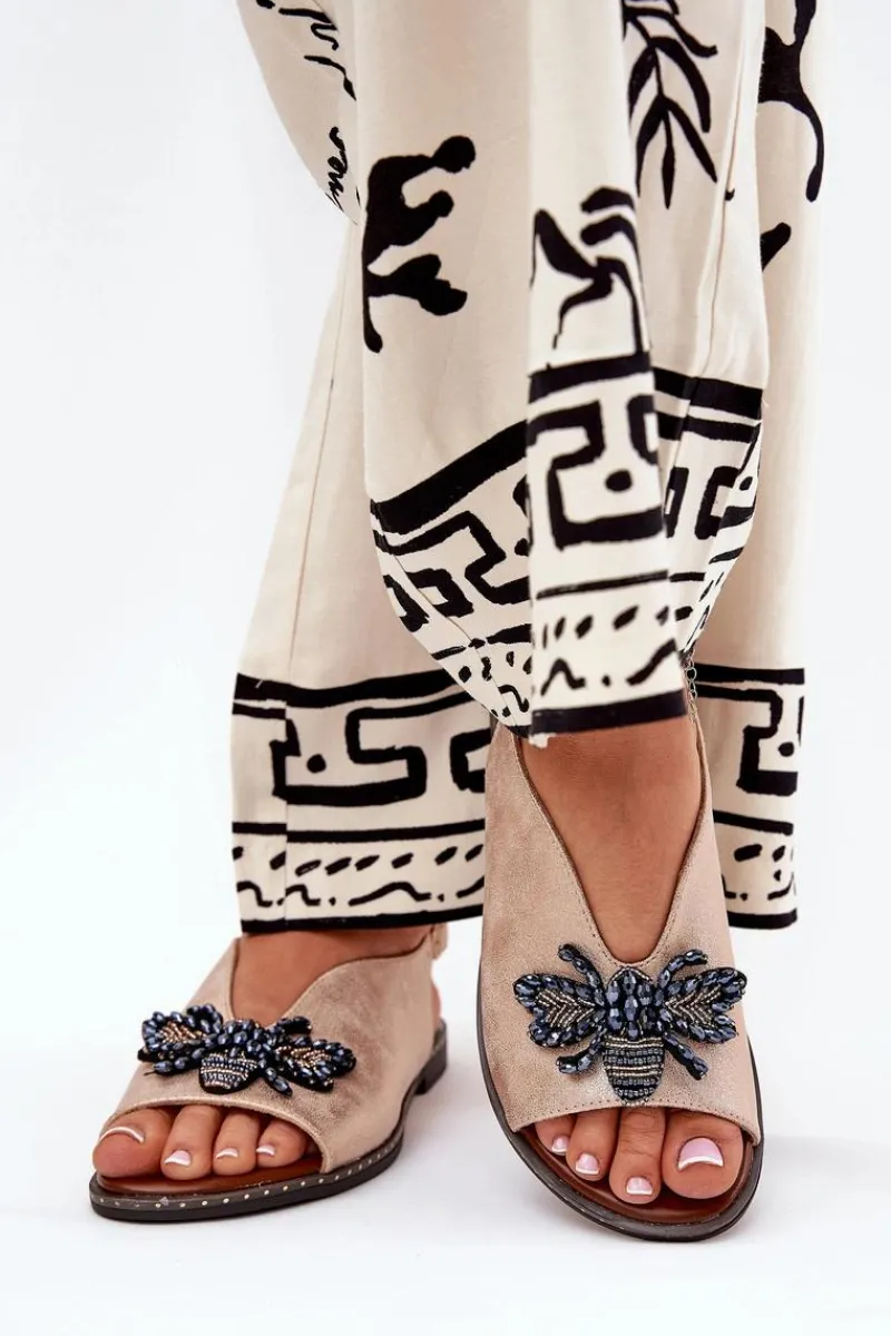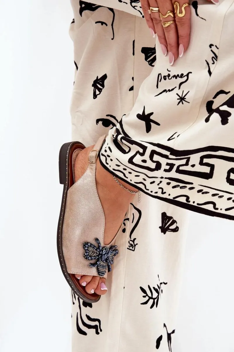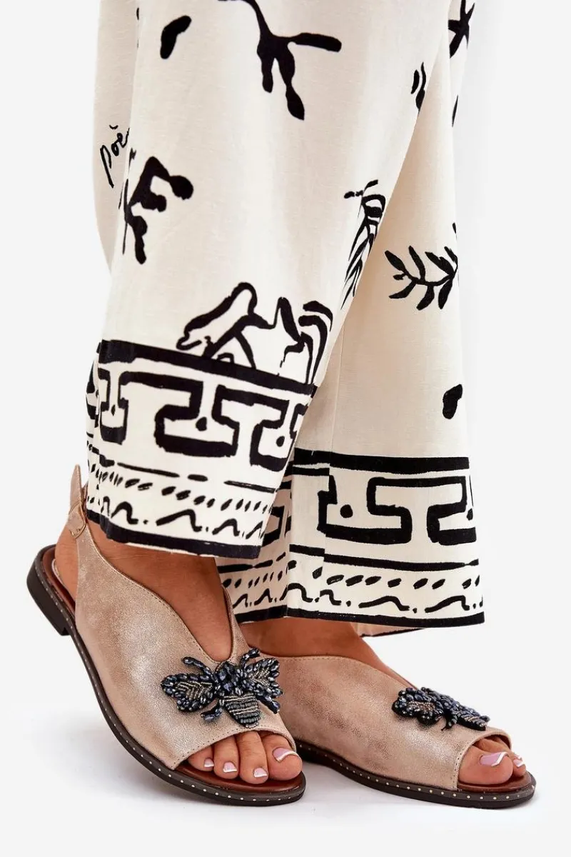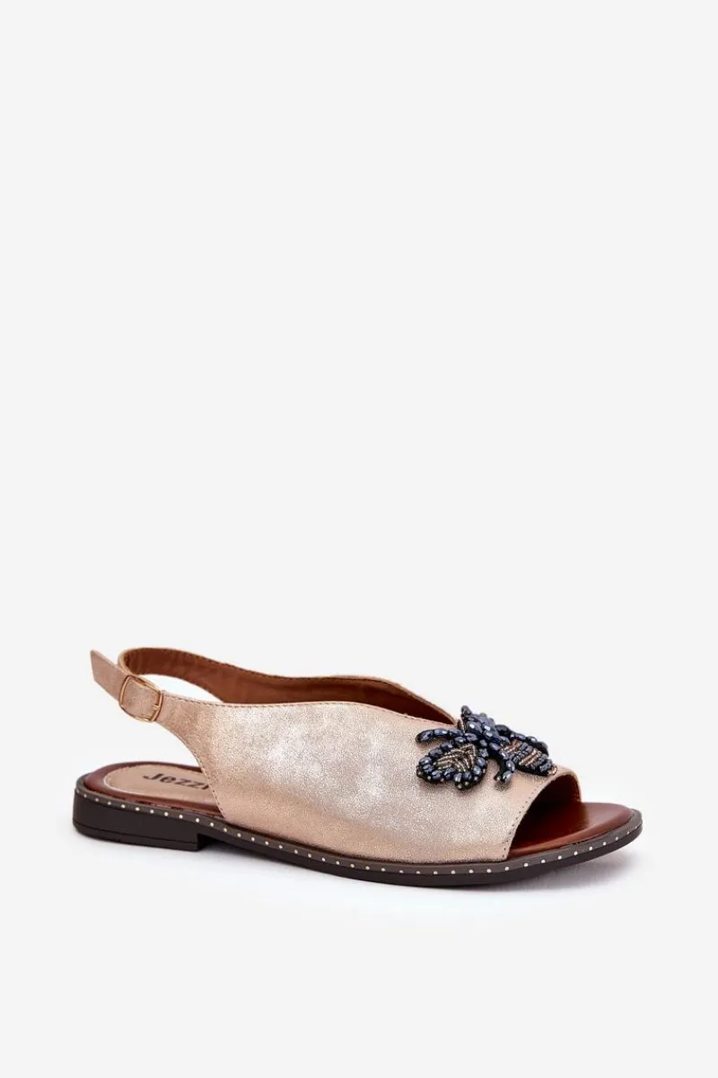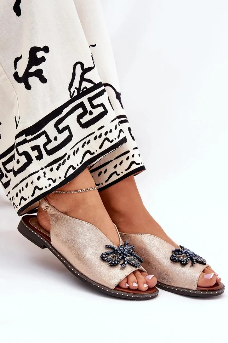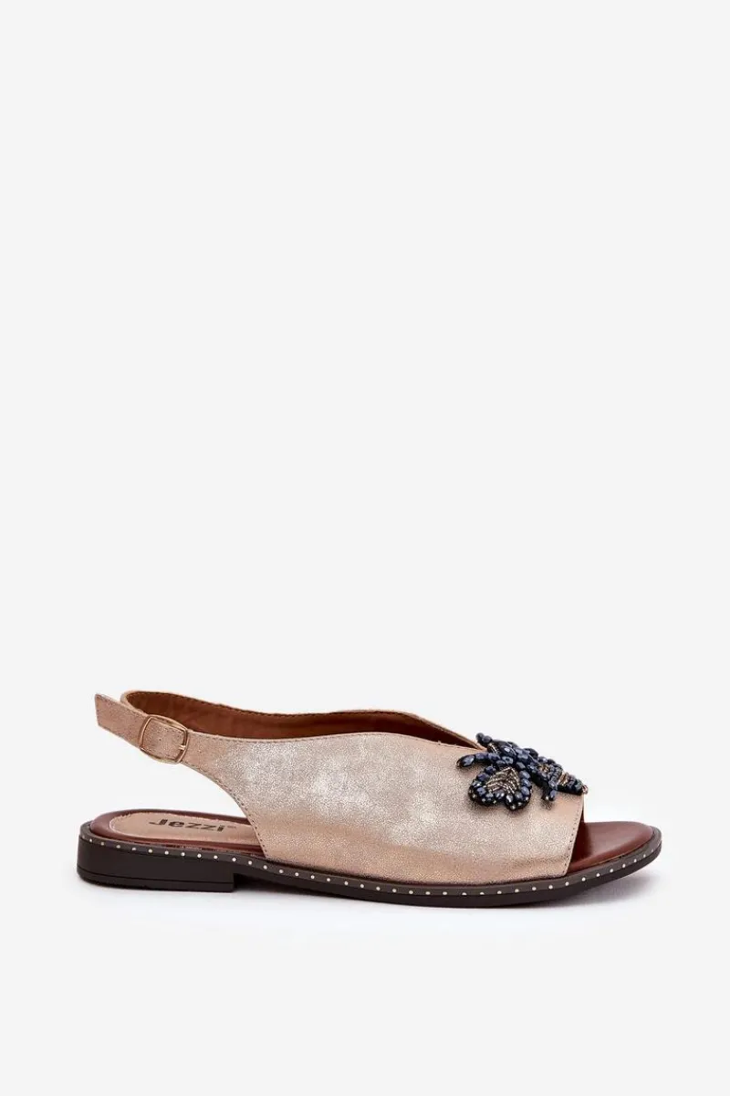 Połyskujące sandały damskie od marki Jezzi to doskonały wybór na letnie stylizacje. Wykonane z wysokiej jakości eko skóry, zapewniają trwałość i komfort noszenia. Płaski obcas gwarantuje wygodę przez cały dzień, a subtelna ozdoba z przodu dodaje im eleganckiego uroku. Zapinane na regulowany pasek ze sprzączką, pozwalają idealnie dopasować je do stopy. Te sandały będą świetnym uzupełnieniem zarówno casualowych, jak i bardziej formalnych zestawów, idealne na różne okazje. Przy wyborze rozmiaru prosimy kierować się tabelą rozmiarów.