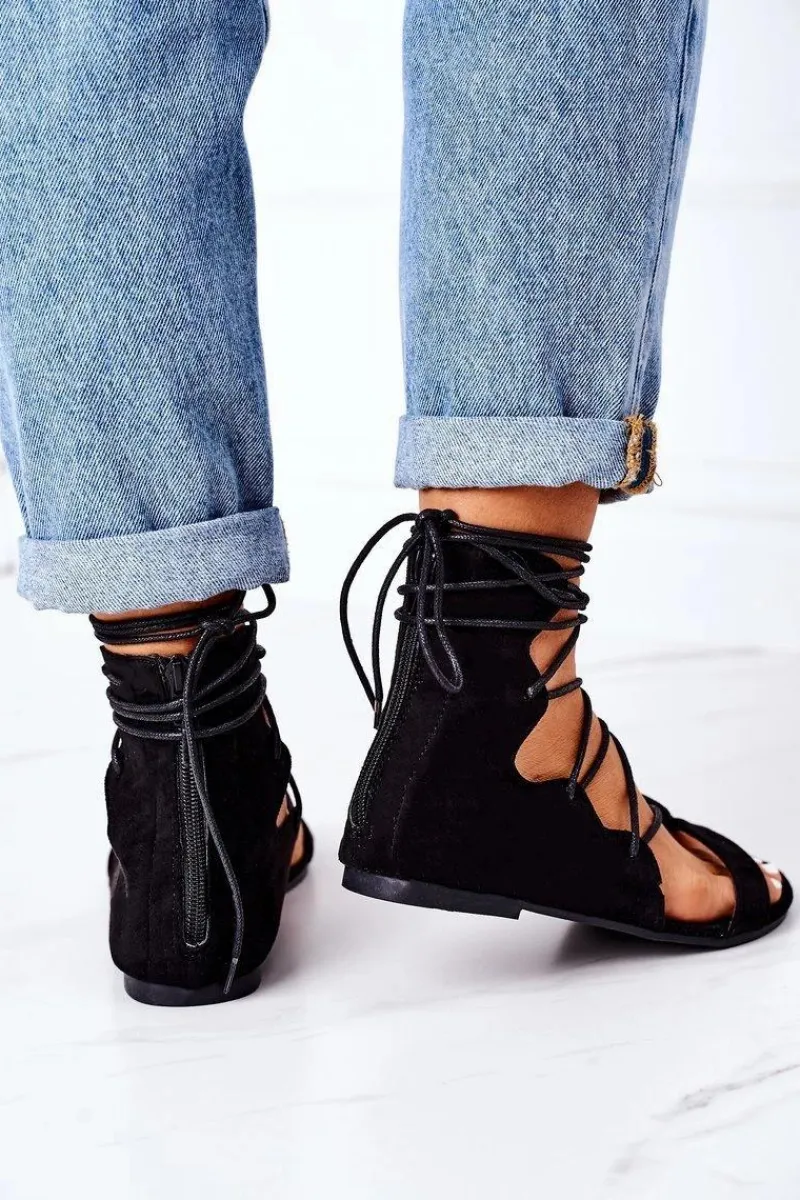 Wyjątkowe sandały z wiązaniem wokół kostki marki Lu Boo. Sandały zostały wykonane z eko zamszu, wszyty suwak ułatwi zakładanie. Przy wyborze rozmiaru prosimy sugerować się tabelą rozmiarów.