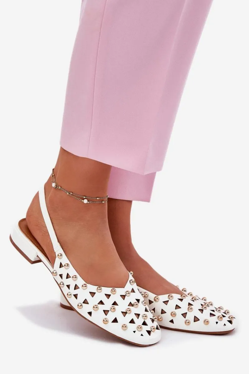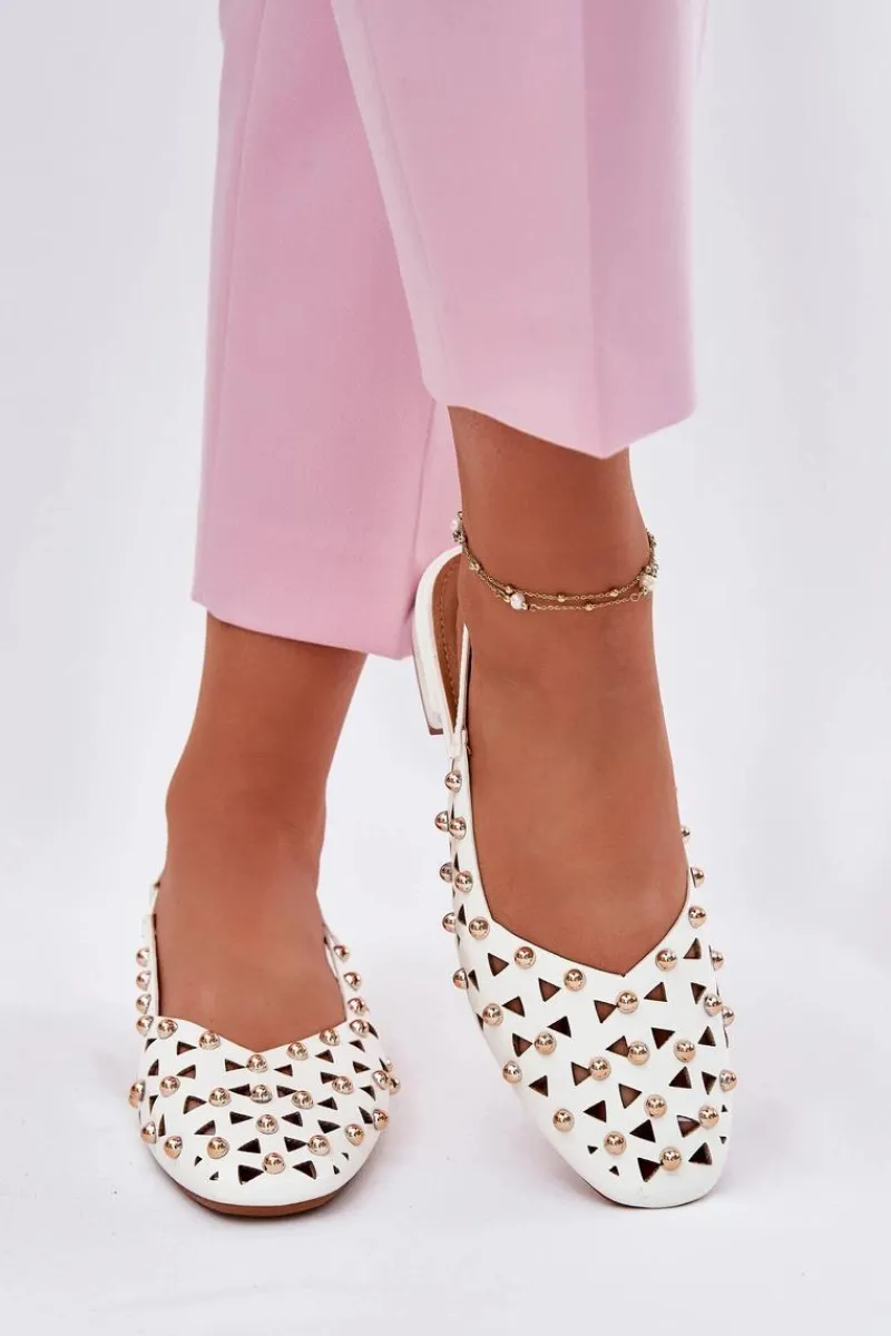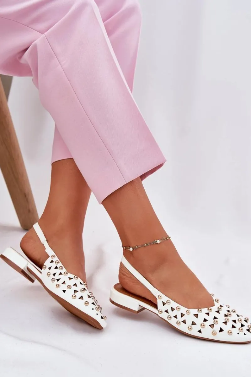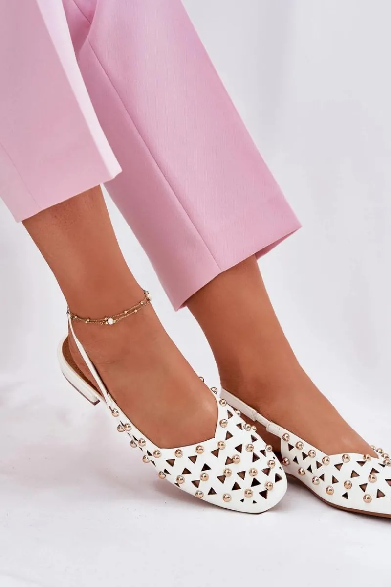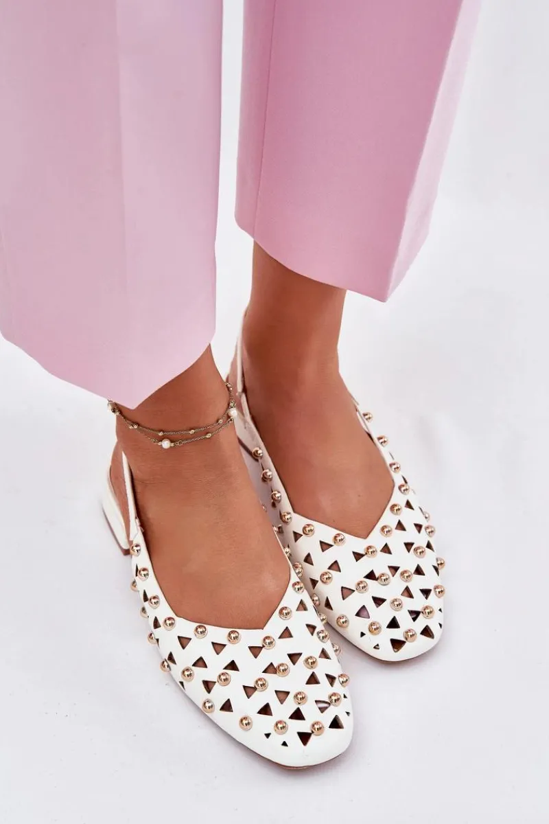 Baleriny damskie ze zdobieniem to połączenie elegancji i komfortu na co dzień. Ażurowy wzór dodaje im lekkości i przewiewności, a odkryte pięty podkreślają letni charakter butów. Osadzone na płaskim obcasie, z zaokrąglonymi noskami, świetnie sprawdzą się zarówno do sukienek, jak i spodni, gwarantując wygodę przez cały dzień. Podczas wyboru rozmiaru prosimy sugerować się tabelą rozmiarów.