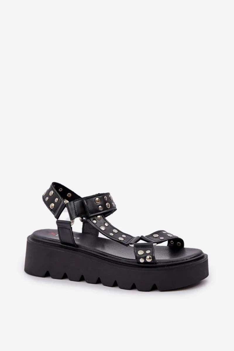Lekkie, zdobione sandały damskie z eko skóry to świetna propozycja na ciepłe dni. Osadzone na platformie, zapewniają komfort i stabilność, dodając lekkości każdemu krokowi. Zapinane na rzep, co ułatwia ich zakładanie i dopasowanie do stopy. Zdobienia na cholewce dodają im subtelnego, modnego charakteru. Model ten doskonale dopełni Twoje letnie stylizacje! Przy wyborze rozmiaru prosimy sugerować się tabelą rozmiarów.