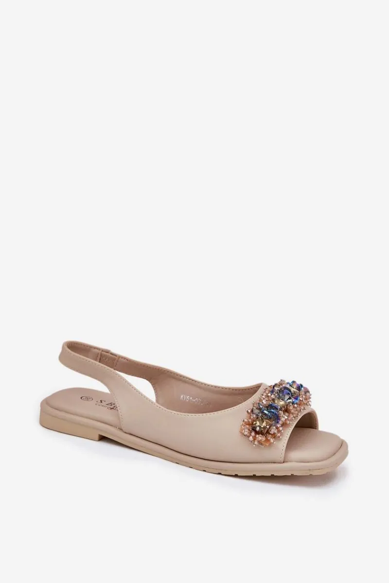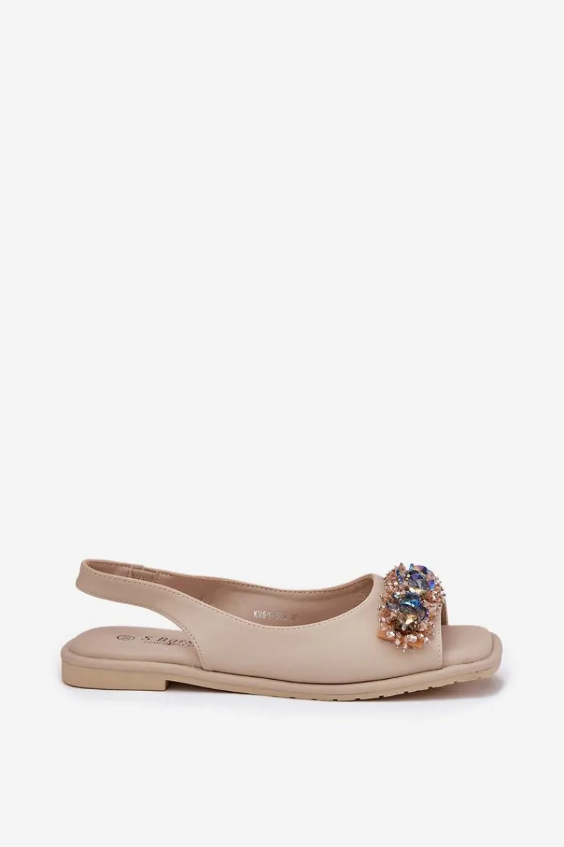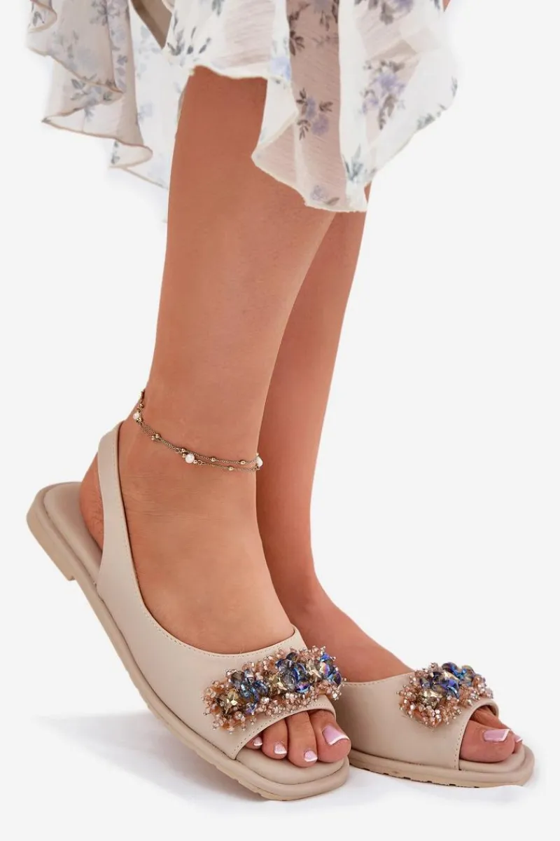 Sandały damskie od marki S.Barski. Osadzone na płaskim obcasie, to elegancka i wygodna opcja na ciepłe dni. Wykonane z eko skóry. Przód ozdobiony kryształkami, co dodaje wyjątkowego blasku. Bardzo miękka wkładka zapewnia komfort noszenia przez cały dzień, a prosty, ale stylowy design sprawia, że sandały te pasują do wielu letnich stylizacji. Idealne zarówno na co dzień, jak i na bardziej eleganckie wyjścia. Przy wyborze rozmiaru prosimy kierować się tabelą rozmiarów.