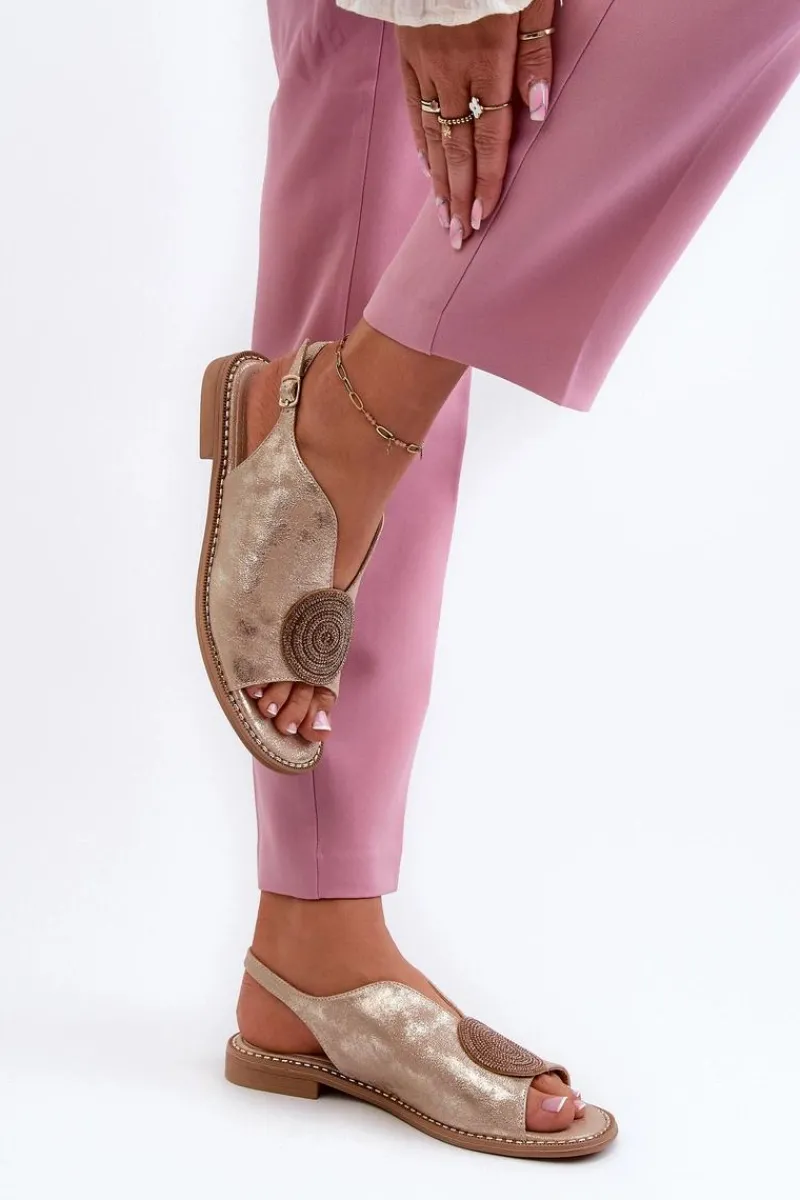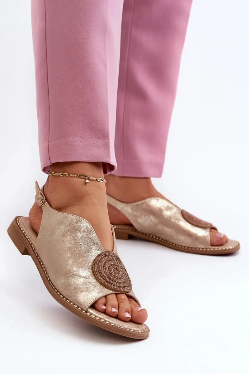 Błyszczące sandały damskie marki S.Barski to połączenie elegancji i wygody. Osadzone na płaskim obcasie. Zapinane na regulowany pasek ze sprzączką, gwarantują idealne dopasowanie do stopy. Skórzana wkładka zapewni komfort podczas użytkowania. Ozdoba dodaje wyjątkowego uroku. Idealne na letnie dni i wieczorne wyjścia! Przy wyborze rozmiaru prosimy kierować się tabelą rozmiarów.