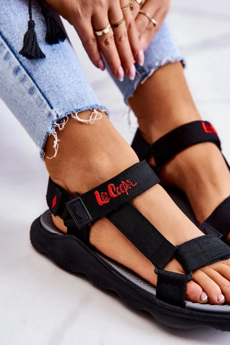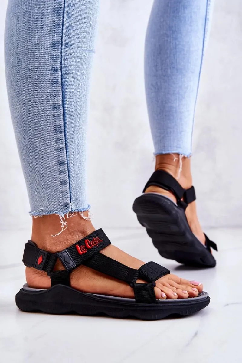 Sandały w sportowym stylu od polskiej marki Lee Cooper. Buty są bardzo lekkie i wygodne. Zostały wykonane z wierzchu z tkaniny, natomiast wkładka oraz podeszwa z wysokojakościowego tworzywa sztucznego. Zapinane na rzep, dzięki temu będą idealnie dopasowane do stopy. Posiadają zapiętek z tworzywa sztucznego. Odpowiednio wyprofilowane, z wypustkami na wkładce sandały sprawią, że Twoje stopy nie będą już obolałe i zmęczone. Świetnie sprawdzą się podczas długich, pieszych wycieczek. Koniecznie także sprawdź całą naszą kolekcję damskich sandałek! Przy wyborze rozmiaru prosimy sugerować się tabelą rozmiarów.