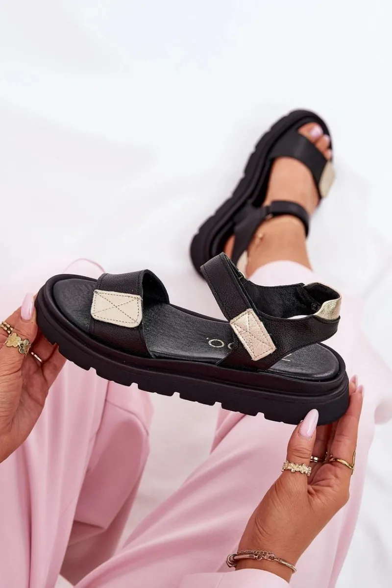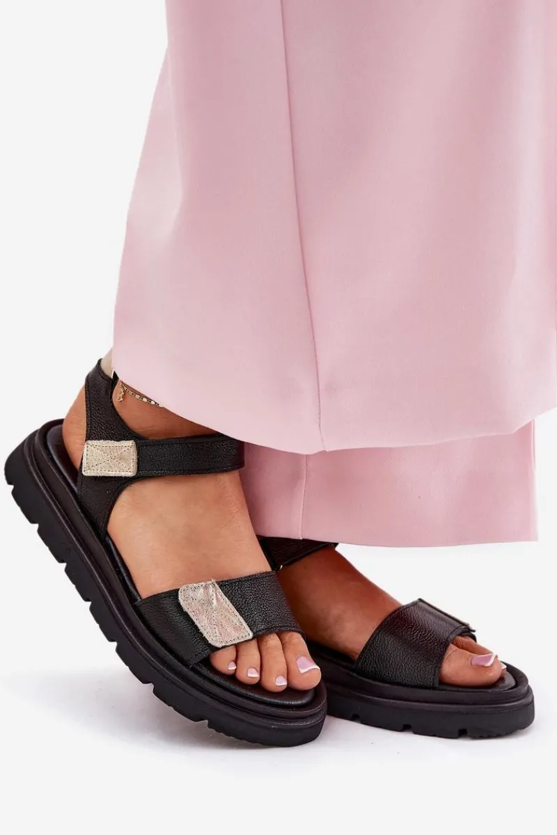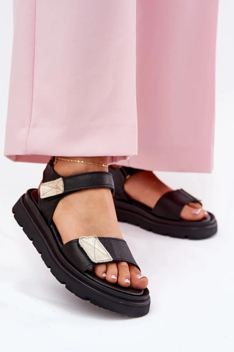 Damskie sandały wykonane z wysokiej jakości skóry naturalnej to połączenie elegancji i wygody. Osadzone na platformie, zapewniają stabilność i komfort przez cały dzień. Zapinane na podwójny rzep, pozwalają na łatwe dopasowanie do stopy, gwarantując idealne dopasowanie i wygodę. Te stylowe i eleganckie sandały będą doskonałym uzupełnieniem letnich stylizacji, łącząc funkcjonalność z modnym wyglądem. Przy wyborze rozmiaru prosimy kierować się tabelą rozmiarów.