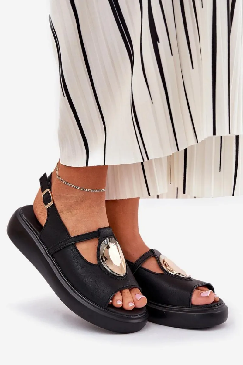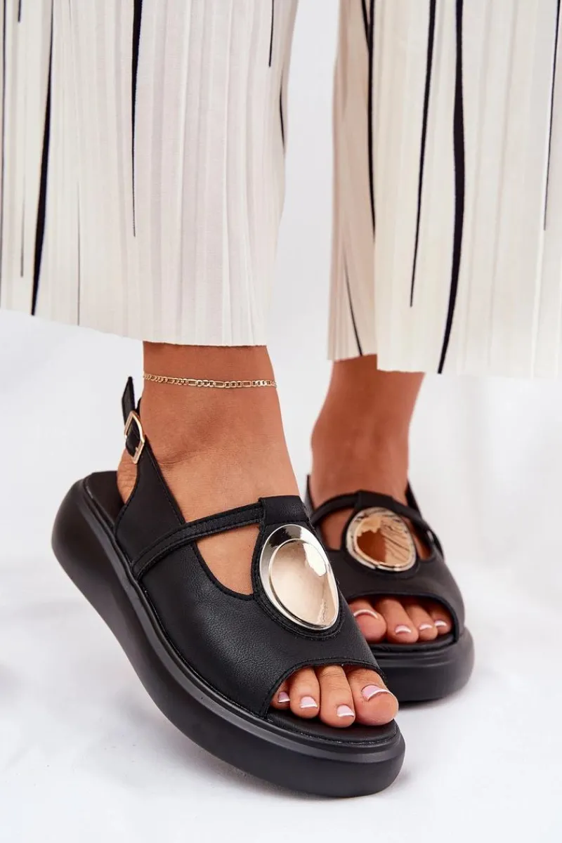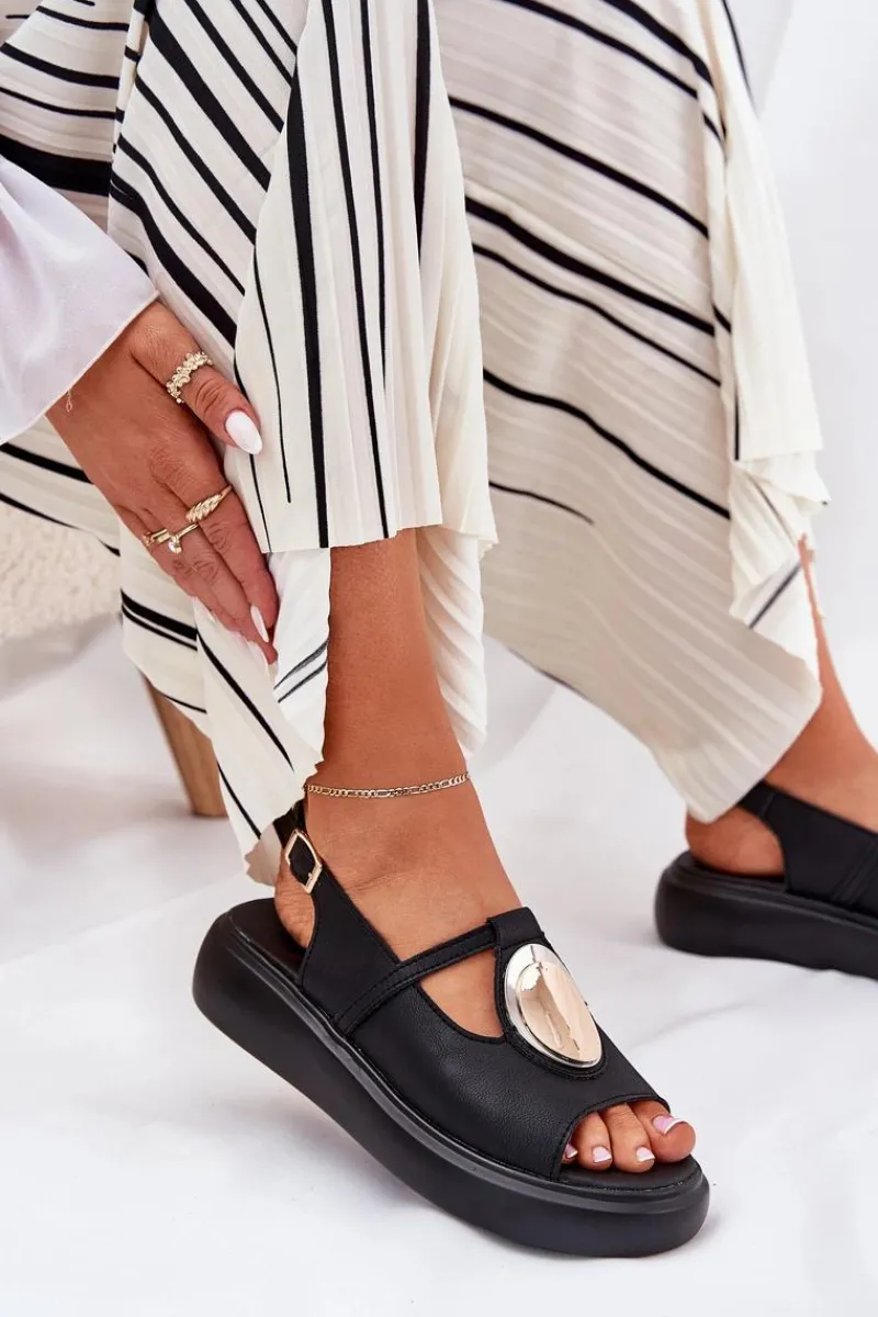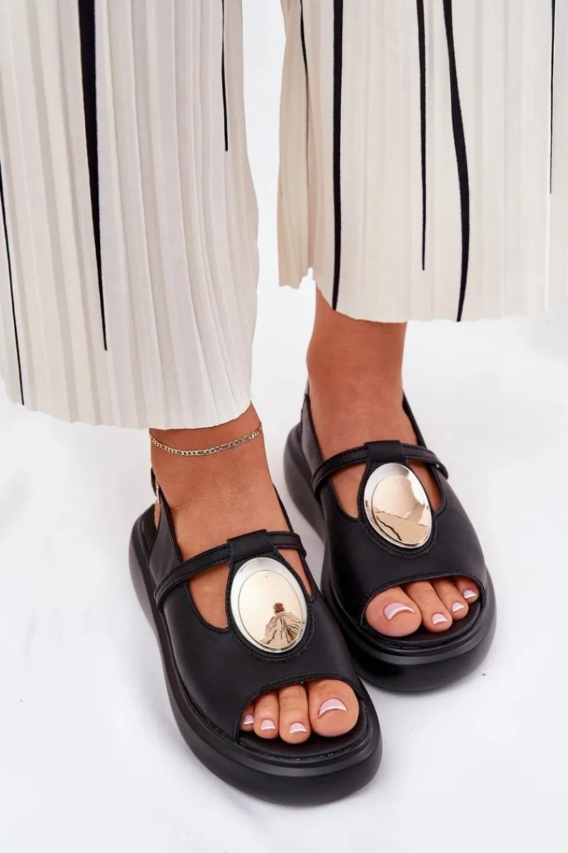 Sandały Z Cholewką|Sandały Na Koturnie>Damskie buty S.Barski Skórzane Eleganckie Sandały Damskie S.Barski GR51-603 Czarne
