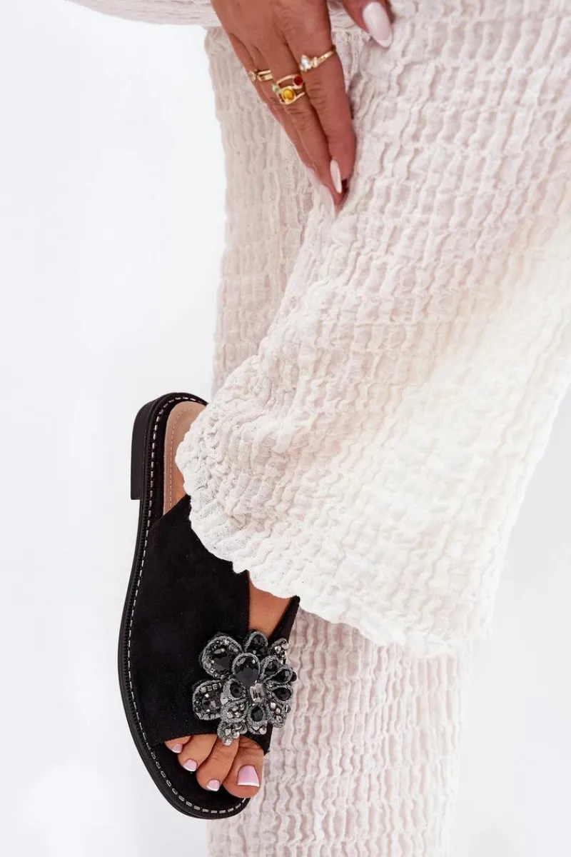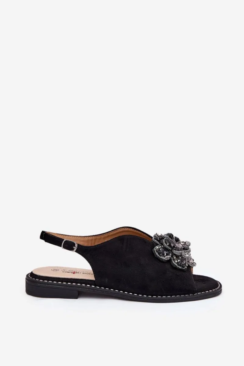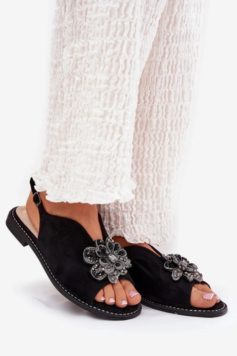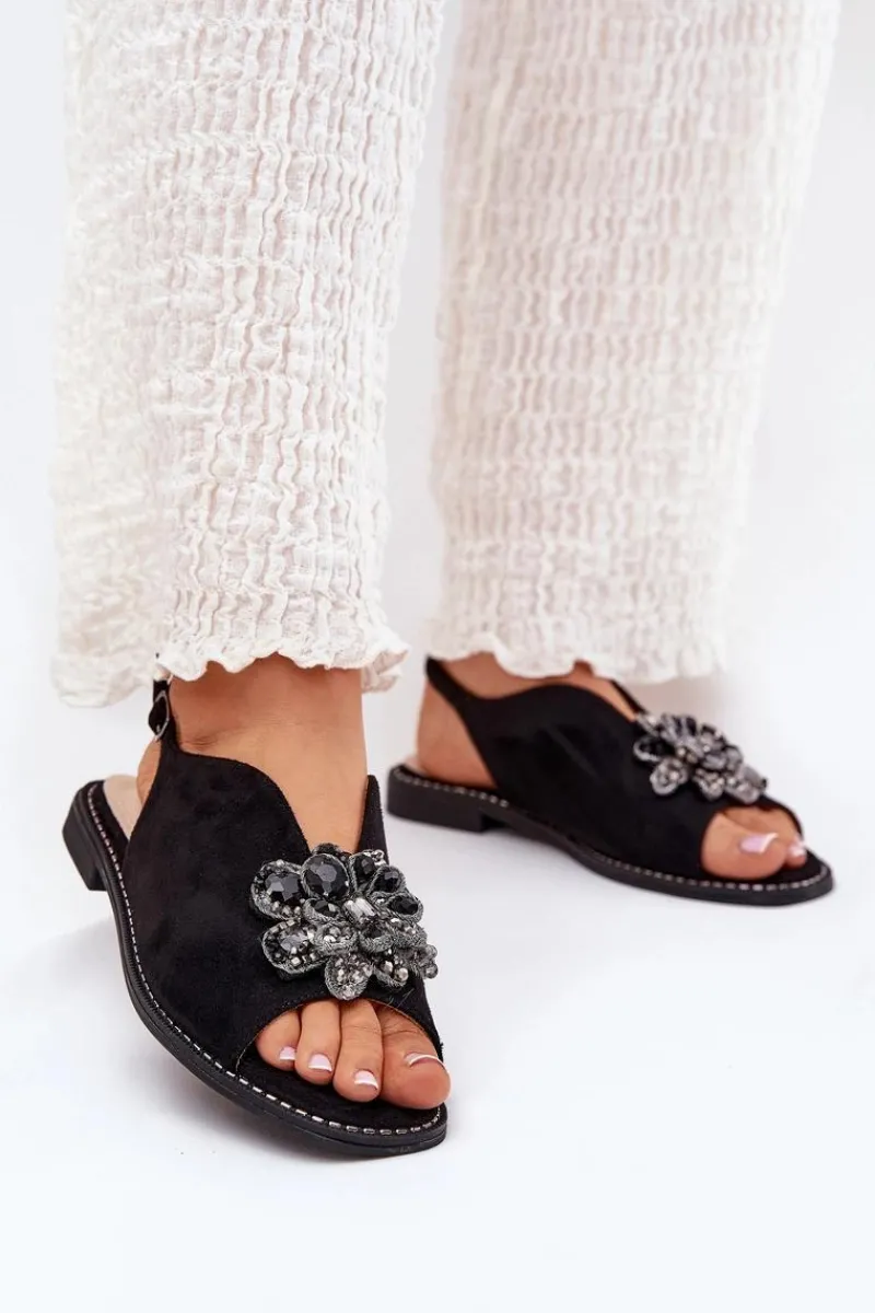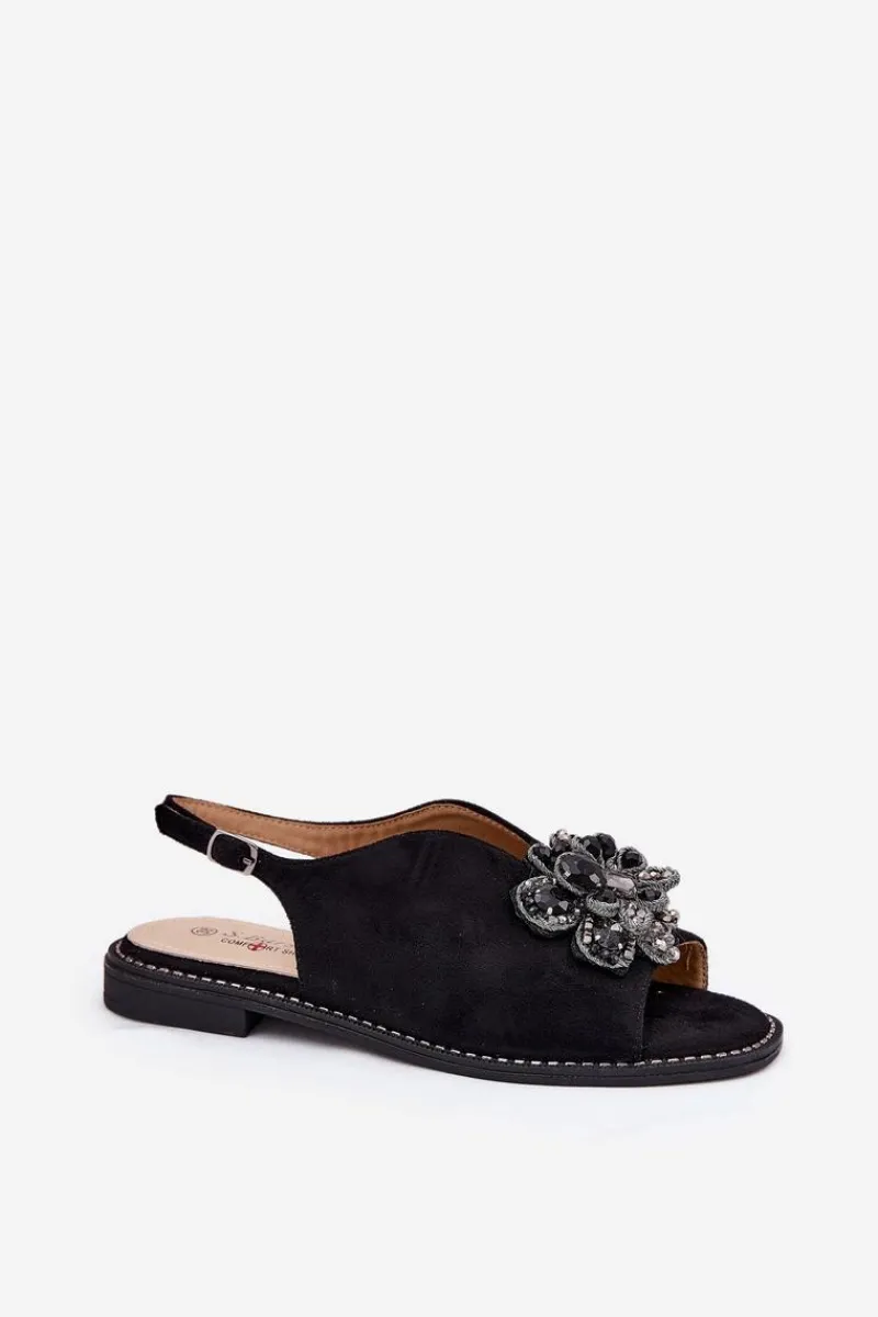 Sandały Z Cholewką|Sandały Płaskie>Damskie buty S.Barski Sandały Damskie Na Płaskim Obcasie Z Ozdobą S.Barski KV27-001 Czarne Czarny