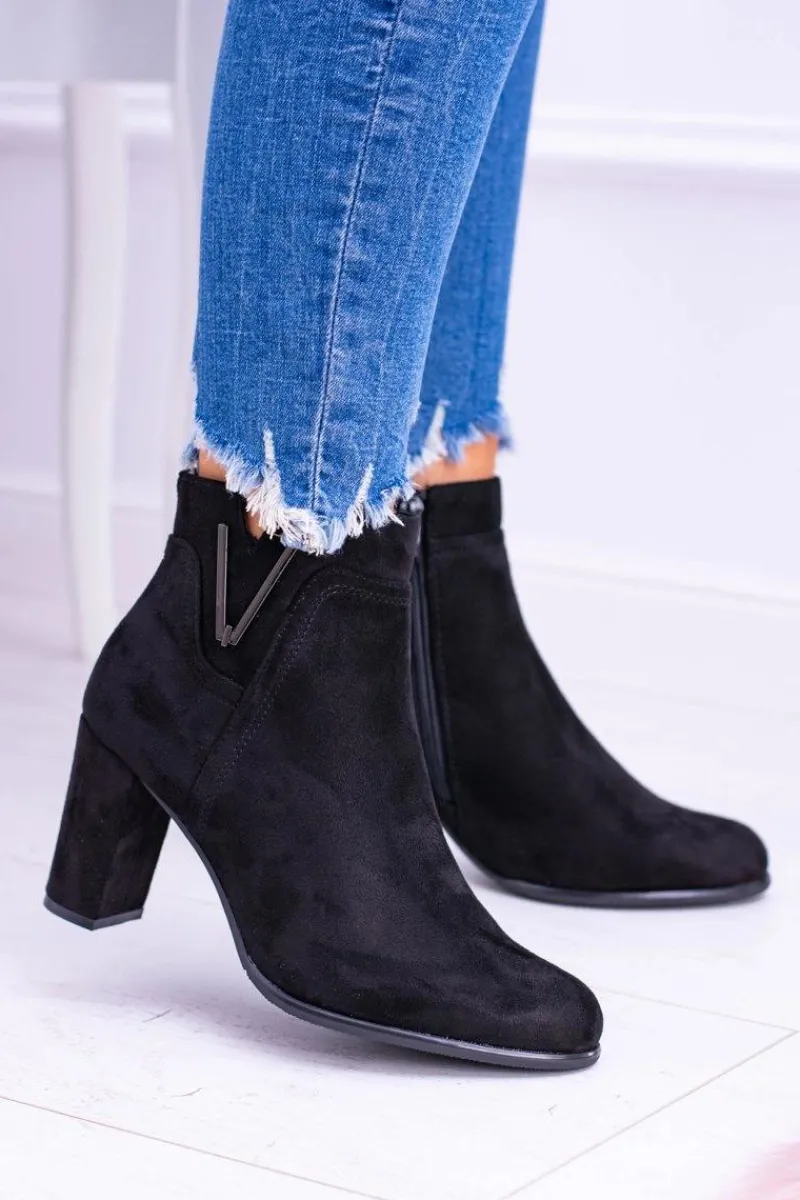 Sergio Leone Czarne Botki Na Słupku Zamsz Valentia Damskie Botki Na Słupku|Brązowe I Beżowe Botki