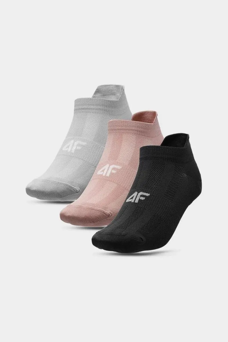 Skarpety treningowe przed kostkę (3-pack) damskie. Wyprodukowaliśmy je z elastycznych i wytrzymałych włókien, które przylegają do stopy i sprawiają, że skarpety pozostają na właściwym miejscu podczas twojego treningu. Skarpety treningowe posiadają bezuciskowy ściągacz oraz wzmocnienia w okolicach pięty i palców. Wyprofilowany mankiet chroni przed odciskami i otarciami. Strefy o zwiększonym stopniu oddychalności oraz włókna w technologii 4FDry usprawniają odprowadzanie wilgoci i zapewniają maksymalny komfort.