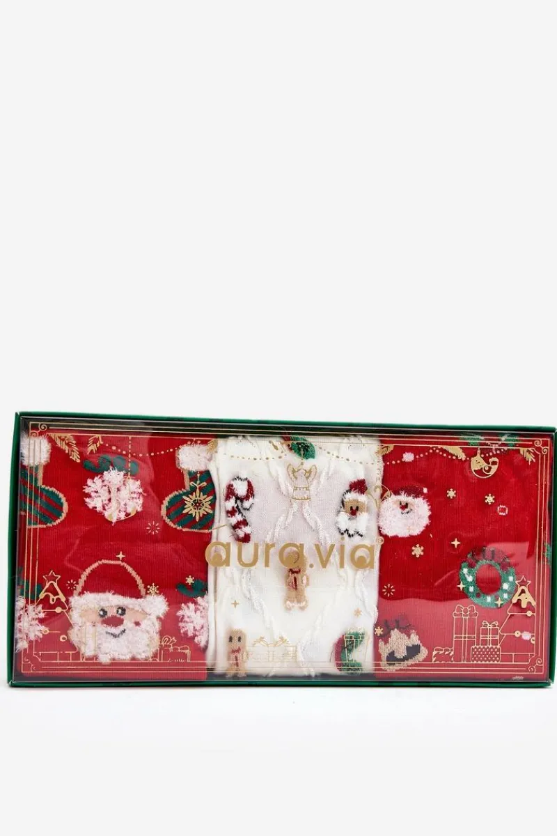 Świetny zestaw trzech par damskich skarpet w świąteczne wzory. Idealny prezent na święta dla każdego! Wykonane z wysokiej jakości bawełny. Posiadają delikatny ściągacz, który odpowiednio dopasuje się do tęgości nogi.