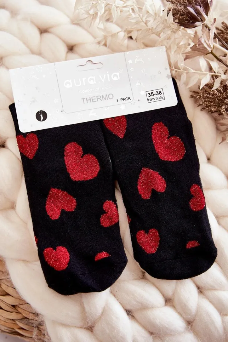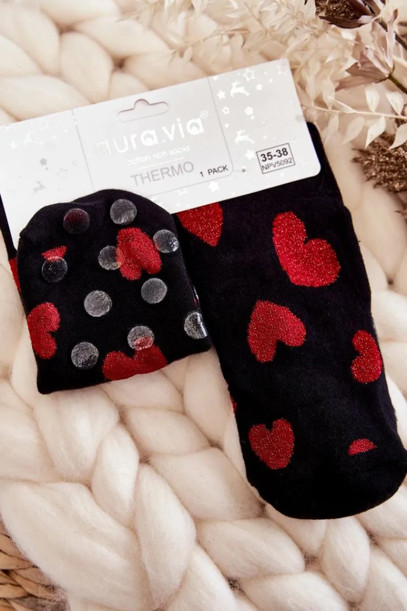 Skarpetki|Skarpetki>Aura.via Damskie Antypoślizgowe Skarpetki W Serca Czarne