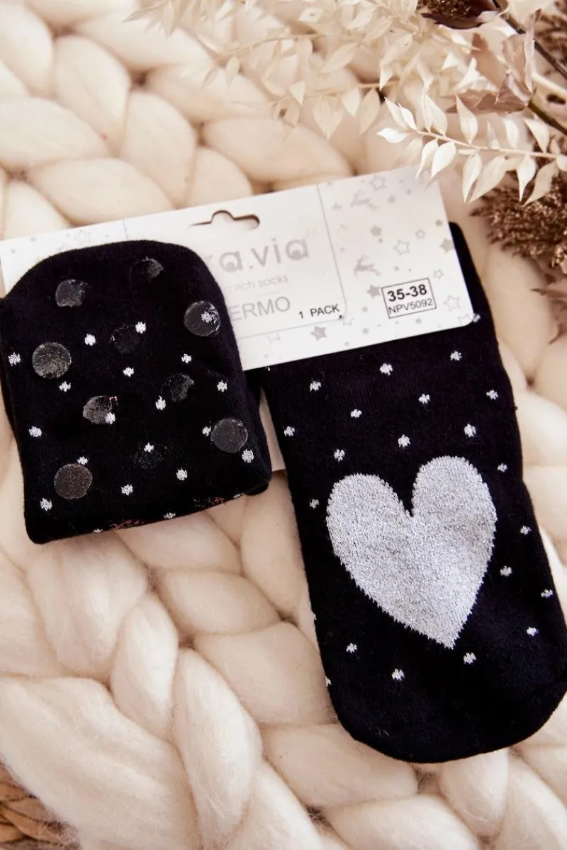 Skarpetki|Skarpetki>Aura.via Damskie Antypoślizgowe Skarpetki W Serca I Kropki Czarne