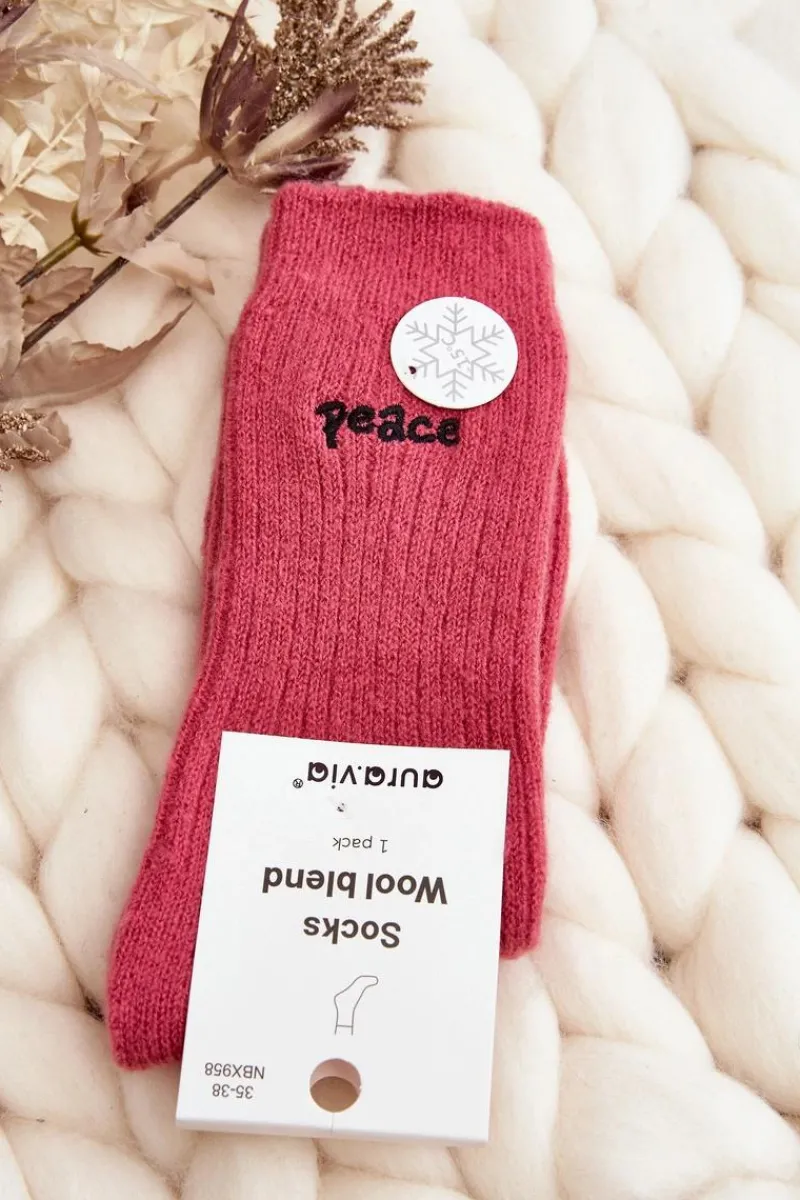 Ciepłe skarpety damskie idealne na mroźne dni. Model z delikatnym napisem. Lekki ściągacz sprawi, że będą idealnie dopasowane do tęgości nogi. Koniecznie powinnaś je mieć!