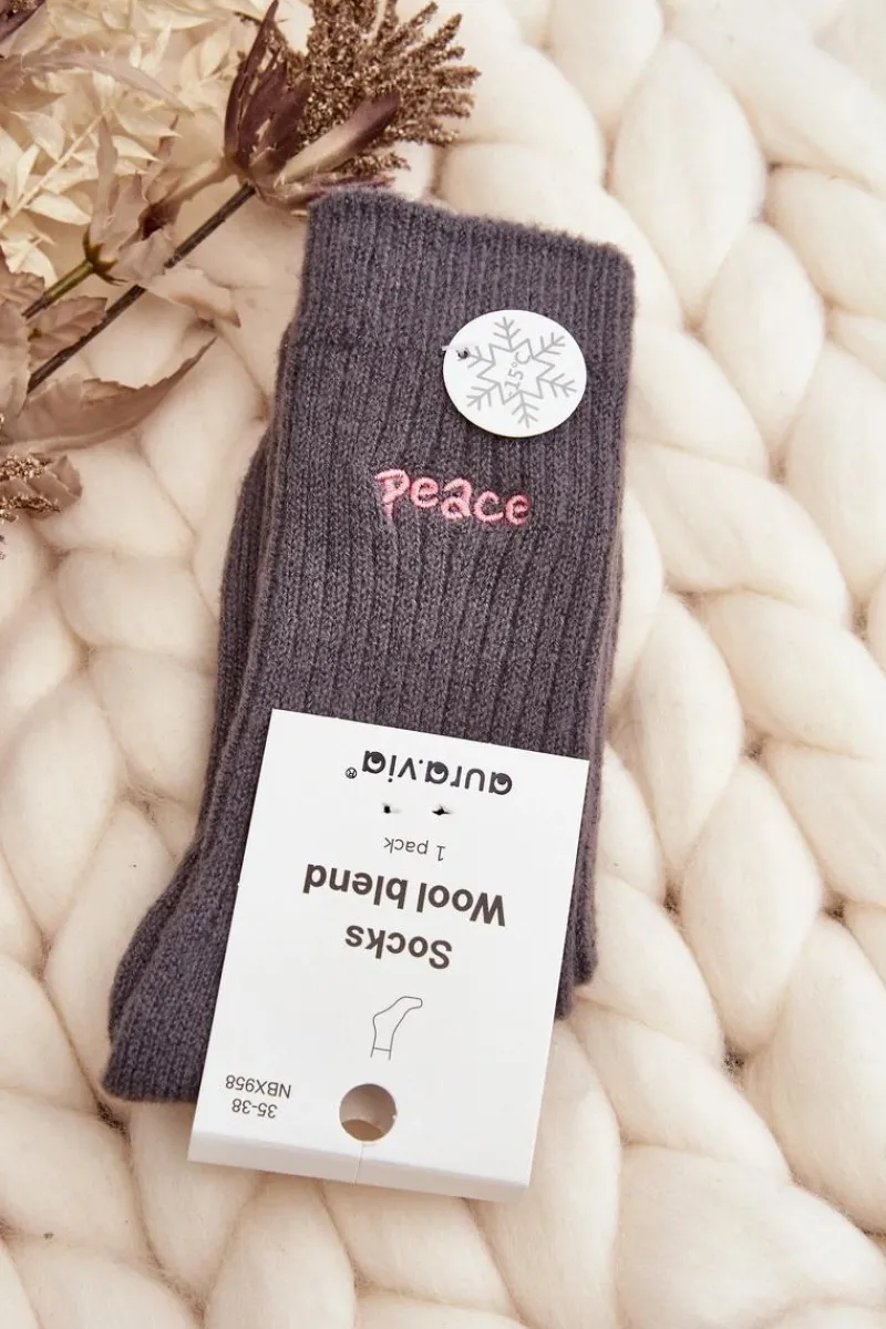 Skarpetki|Skarpetki>Aura.via Damskie Ciepłe Skarpety Z Napisem Szare