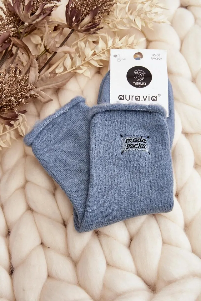 Ciepłe skarpety damskie idealne na mroźne dni. Model z małą naszywką. Lekki ściągacz sprawi, że będą idealnie dopasowane do tęgości nogi. Koniecznie powinnaś je mieć!