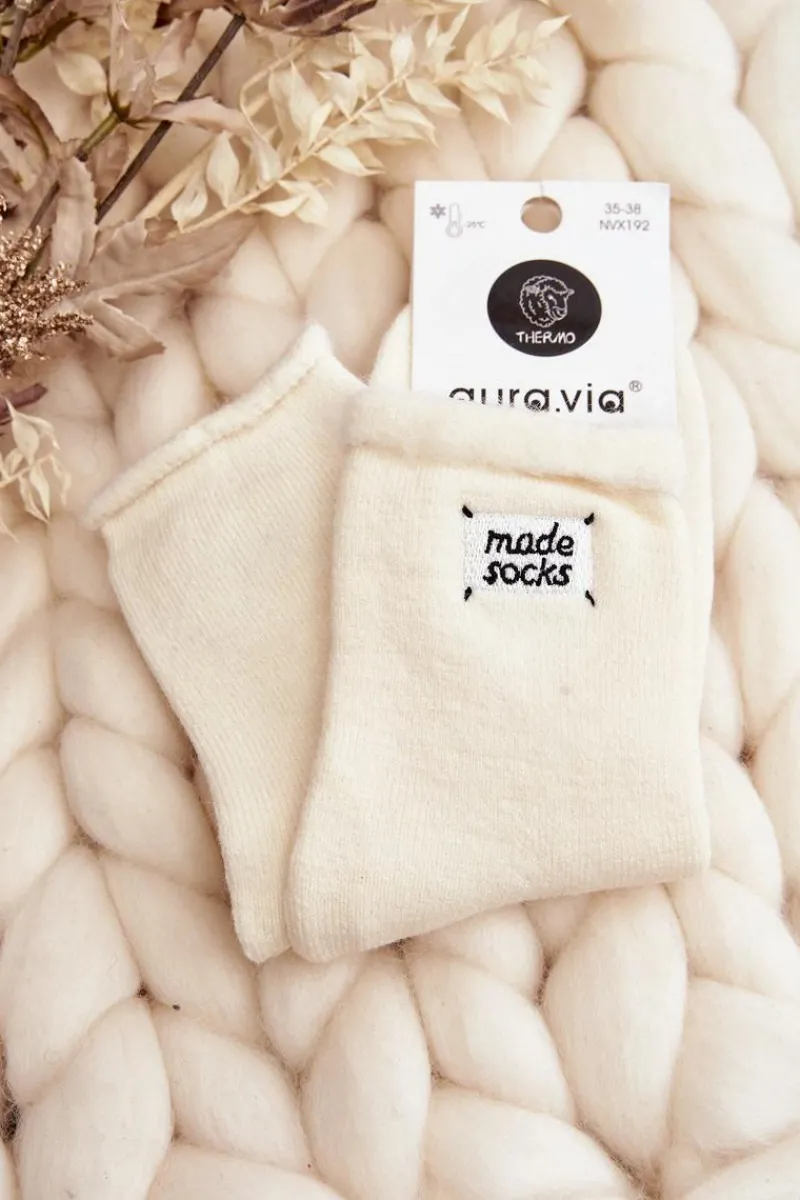 Ciepłe skarpety damskie idealne na mroźne dni. Model z małą naszywką. Lekki ściągacz sprawi, że będą idealnie dopasowane do tęgości nogi. Koniecznie powinnaś je mieć!