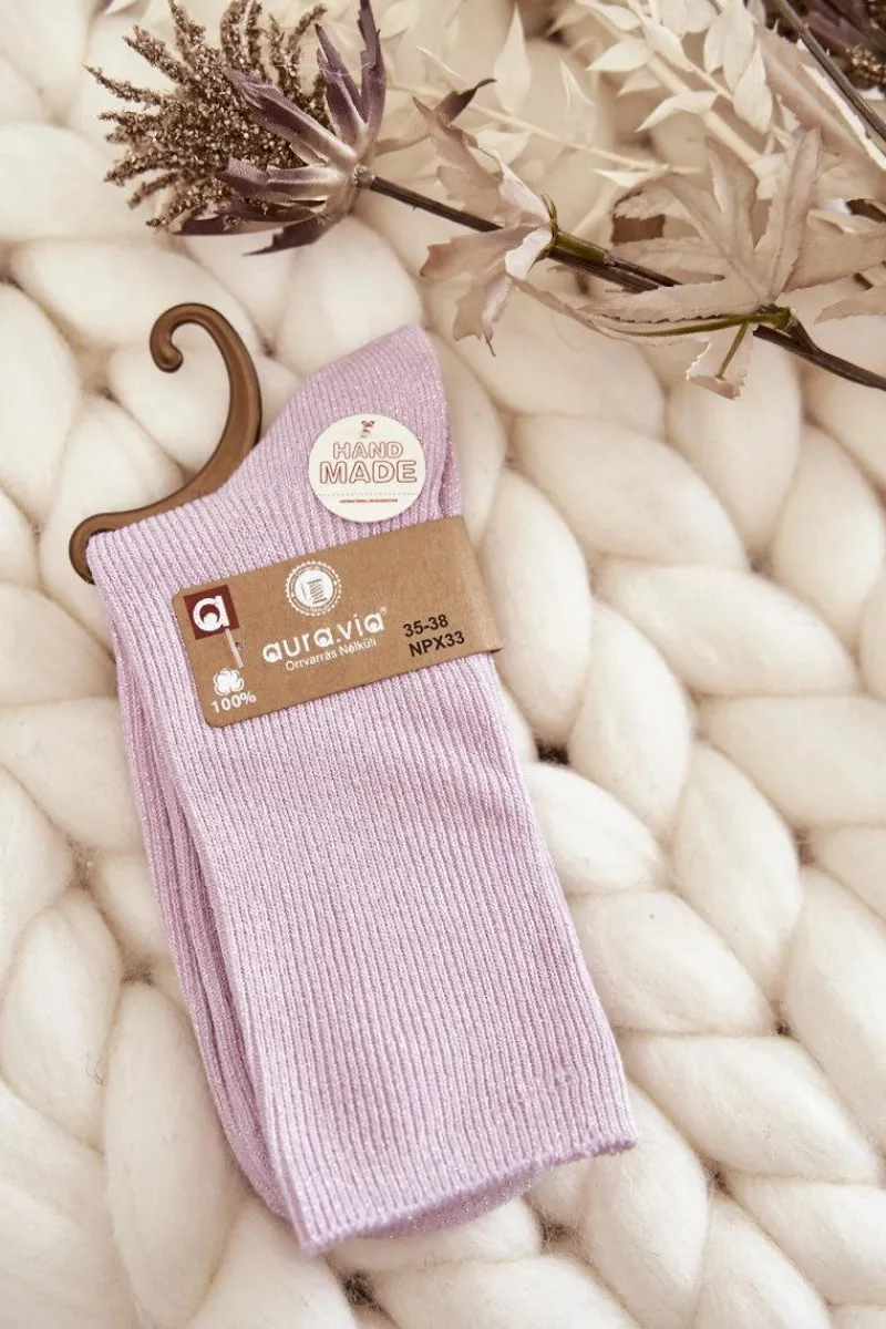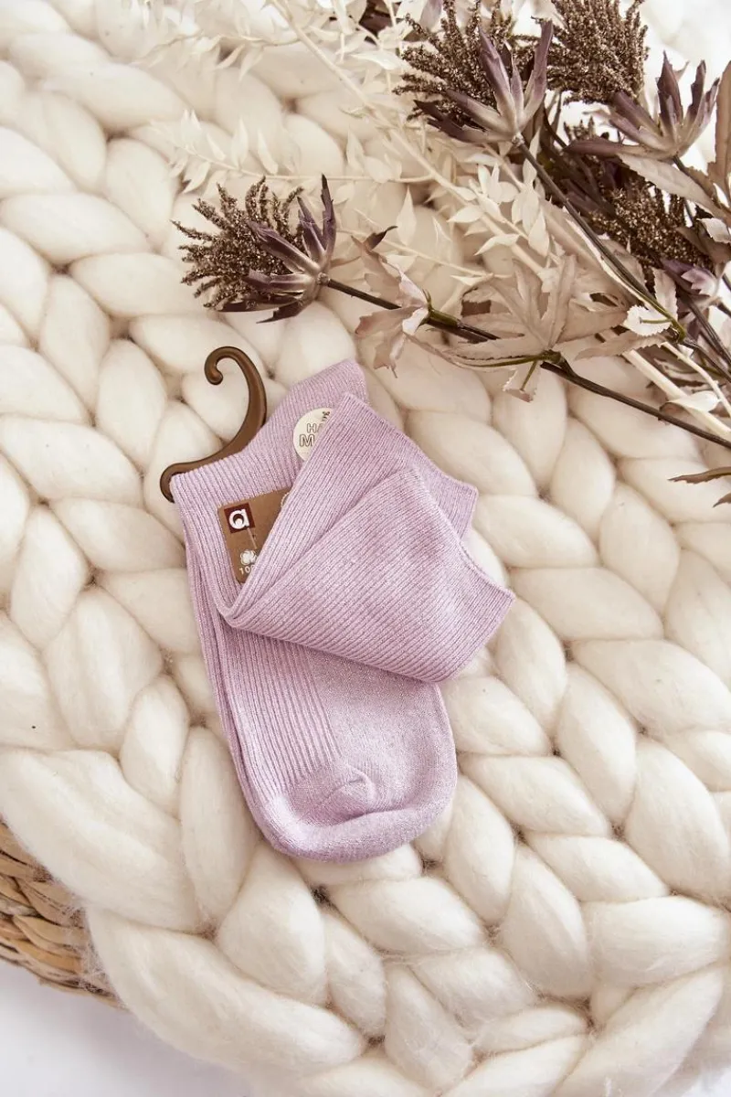 Damskie skarpetki o modnym fasonie zostały wykonane z bawełnianej tkaniny z dodatkiem lurexu, czyli nici metalizowanej. Skarpetki te są bezuciskowe. Model prążkowany, wykonany z wytrzymałej, przewiewnej tkaniny. Dodatkowo skarpetki są antybakteryjne. Model ten na pewno świetnie będzie prezentować się w wielu stylizacjach w chłodniejsze dni!