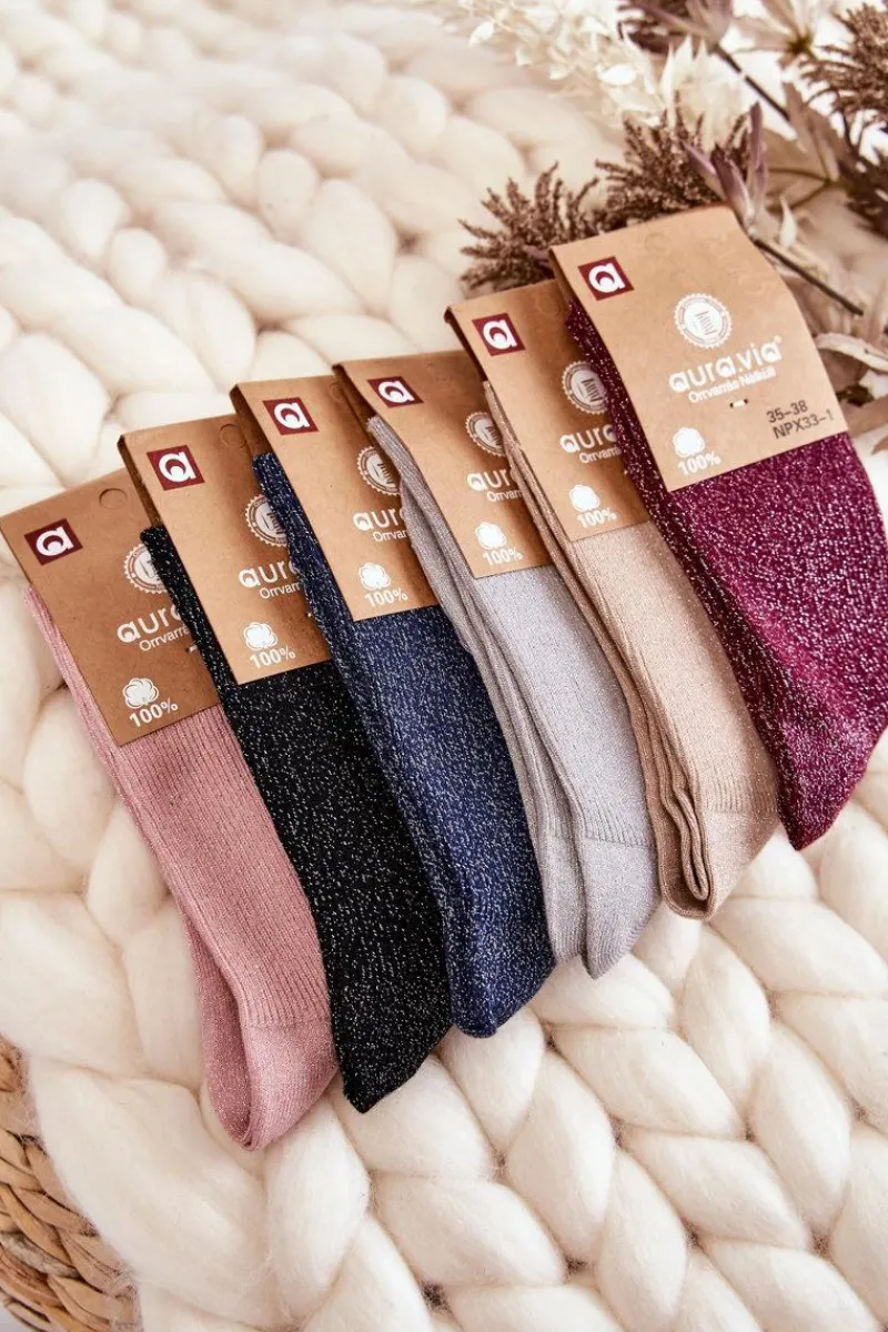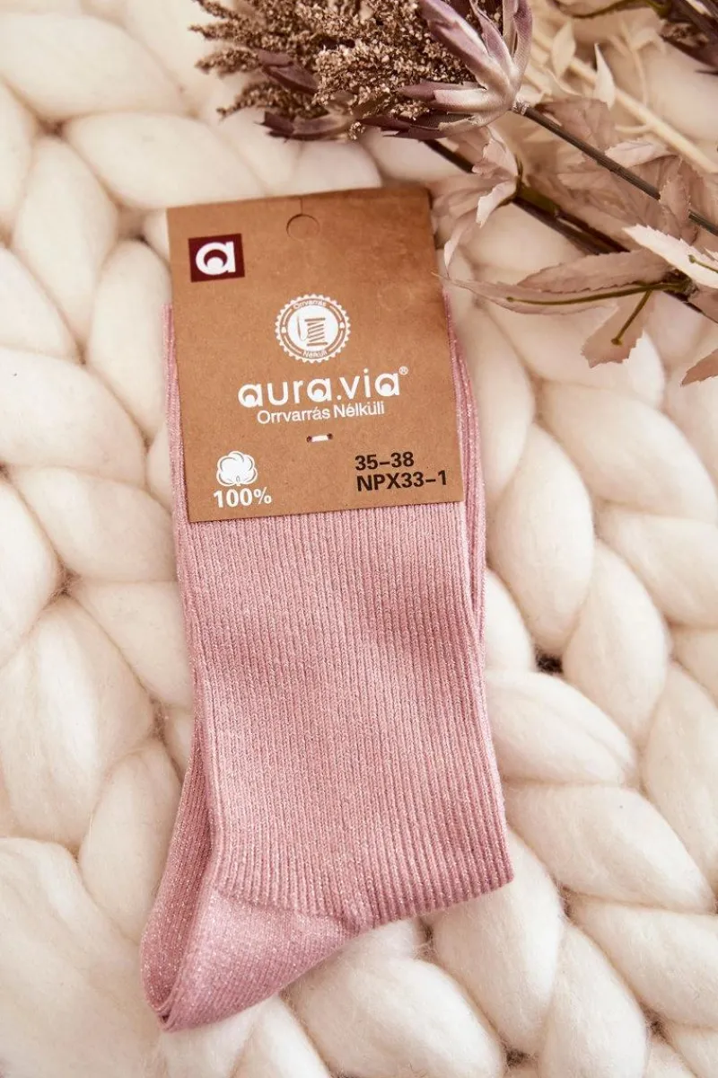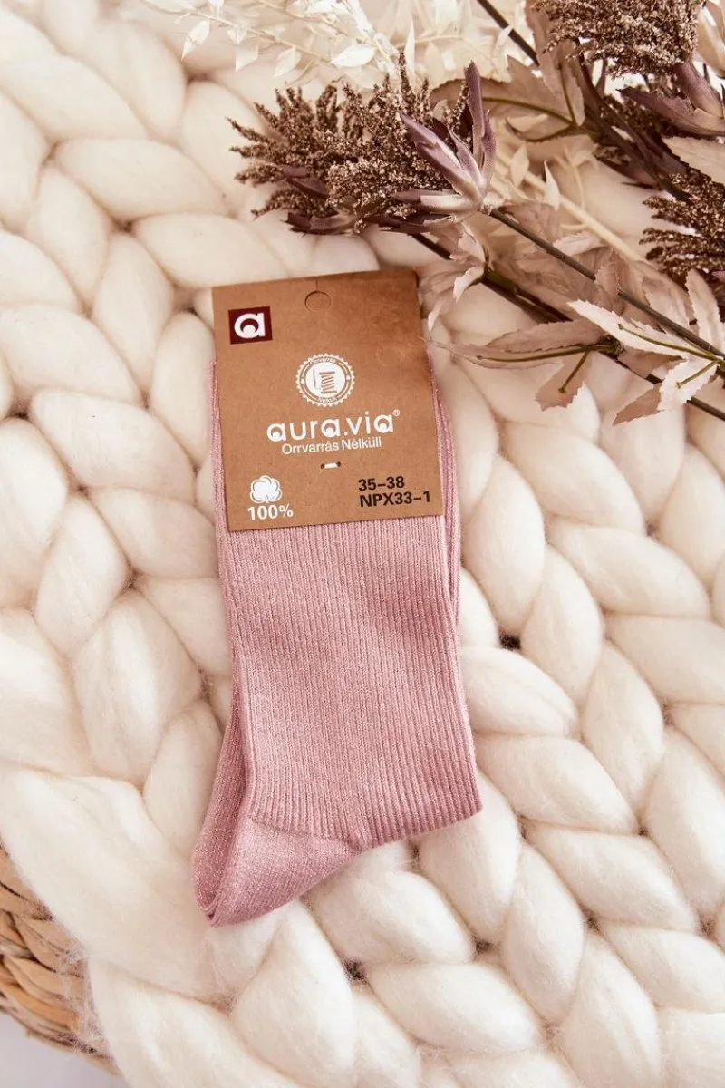 Skarpetki|Skarpetki>Aura.via Damskie Skarpetki Z Błyszczącą Nicią Różowe