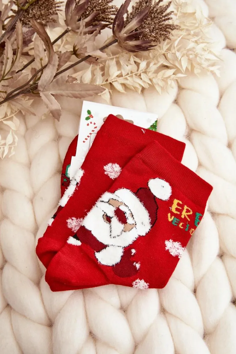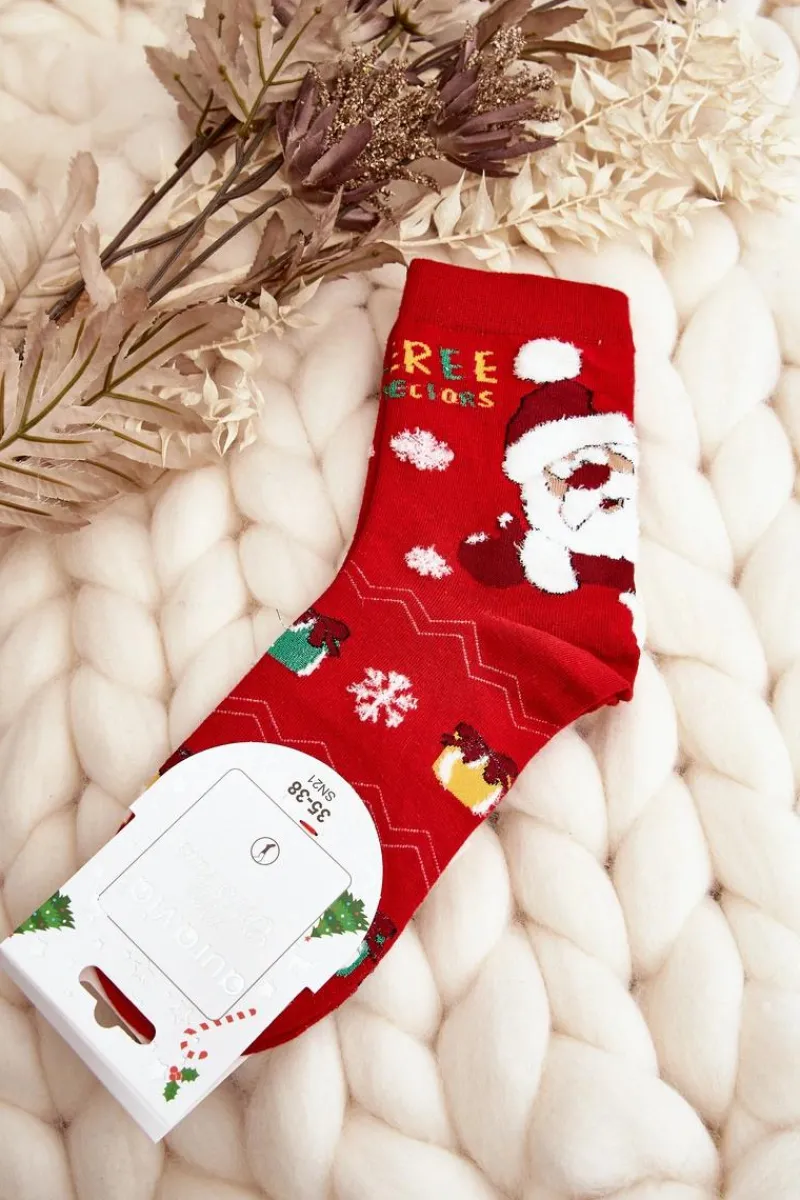 Skarpetki|Skarpetki>Aura.via Damskie Skarpety Z Mikołajem Czerwone