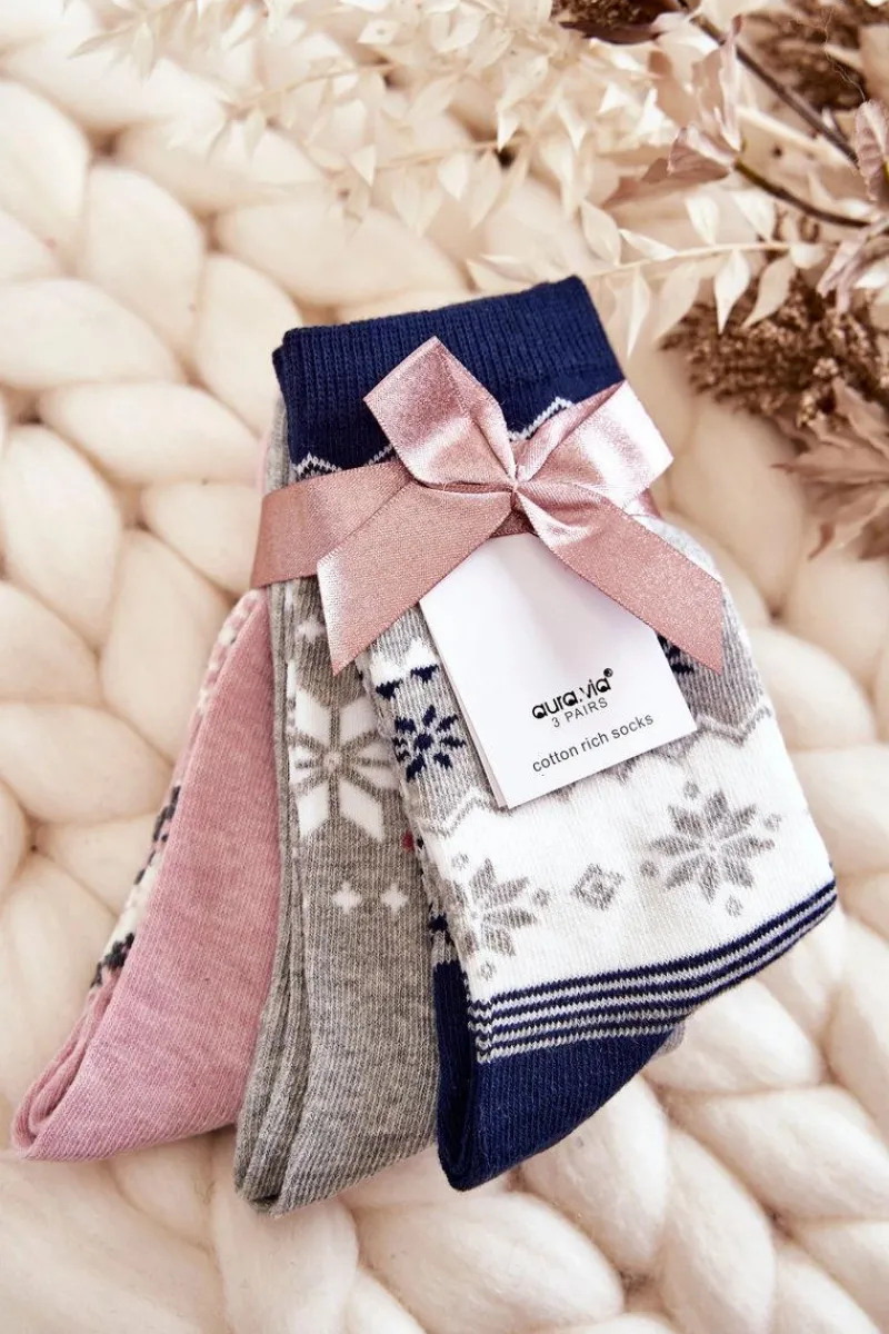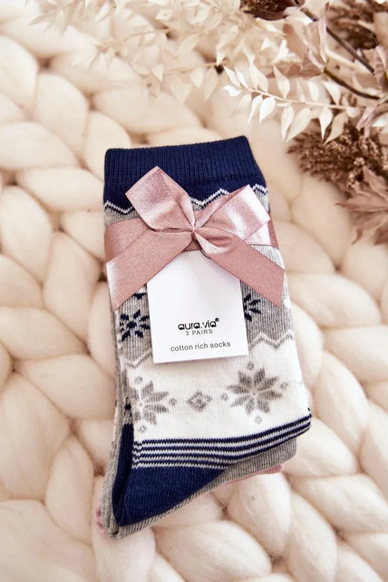 Skarpetki|Skarpetki>Aura.via Damskie Świąteczne Skarpetki 3-Pak Świąteczne Szaro-Granatowe