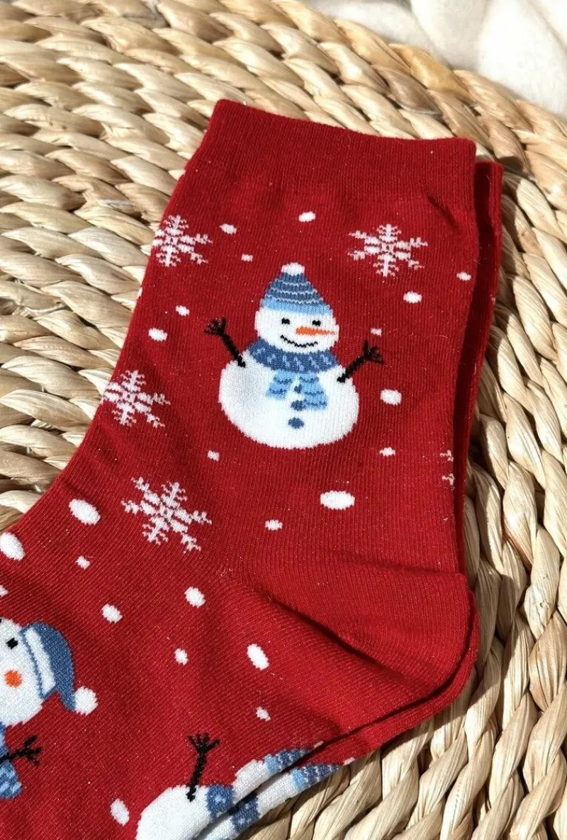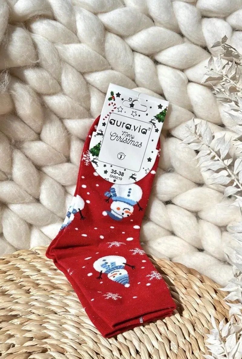 Skarpetki|Skarpetki>Aura.via Damskie Świąteczne Skarpety W Bałwany Czerwone