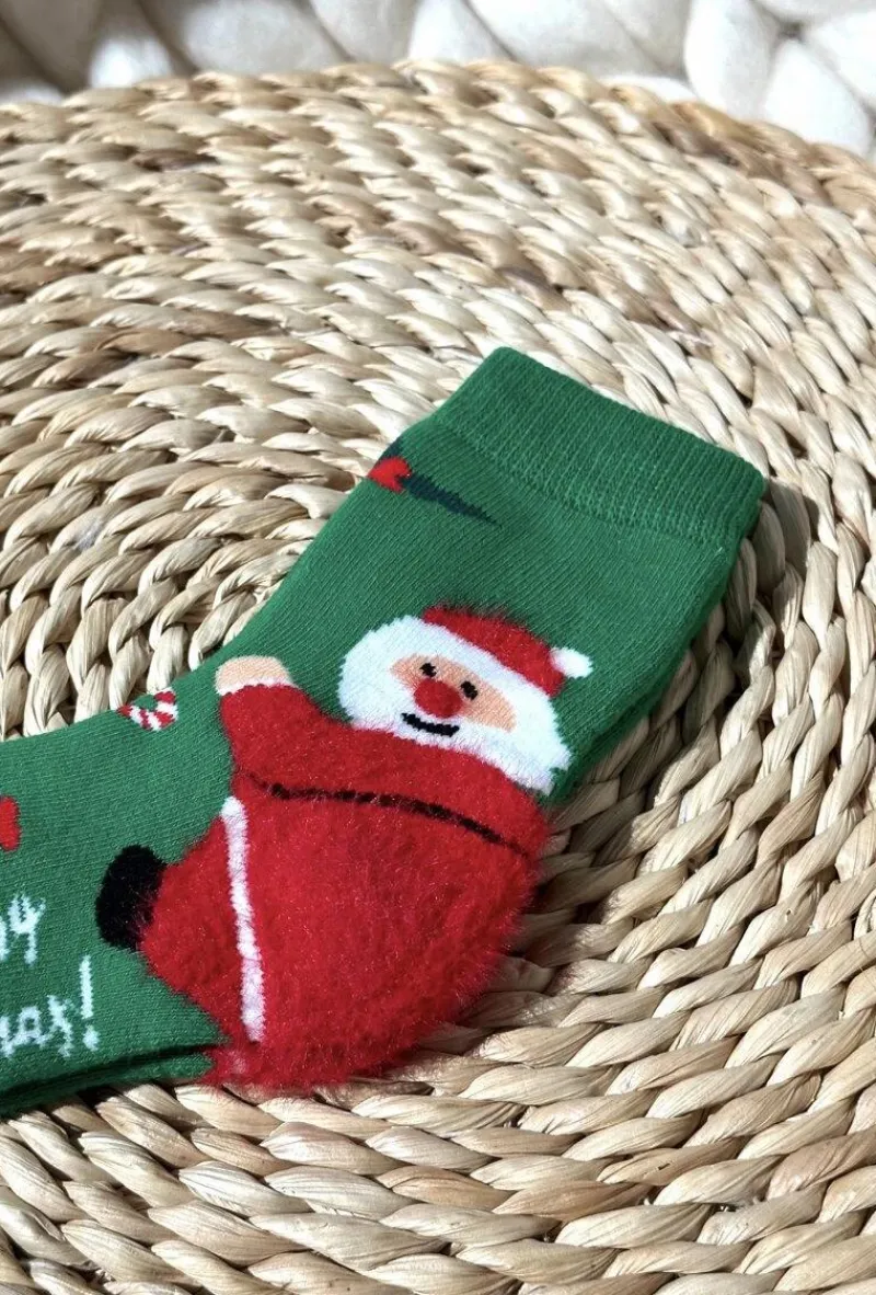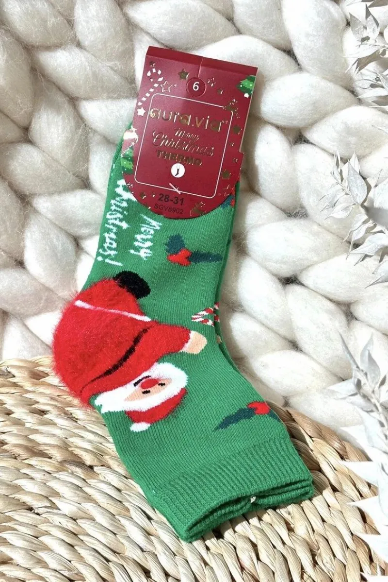 Dziecięce skarpety wykonane z bawełny, zapewniają komfort noszenia przez cały dzień. Skarpety ozdobione są uroczym motywem świątecznym z wizerunkiem Mikołaja, co nadaje im wesołego i świątecznego charakteru. Idealne na chłodniejsze dni. Skarpety są dostępne w różnych rozmiarach, dzięki czemu można je łatwo dopasować do dziecięcych stóp. Doskonały wybór na prezent świąteczny lub jako dodatek do zimowej garderoby dziecka.
